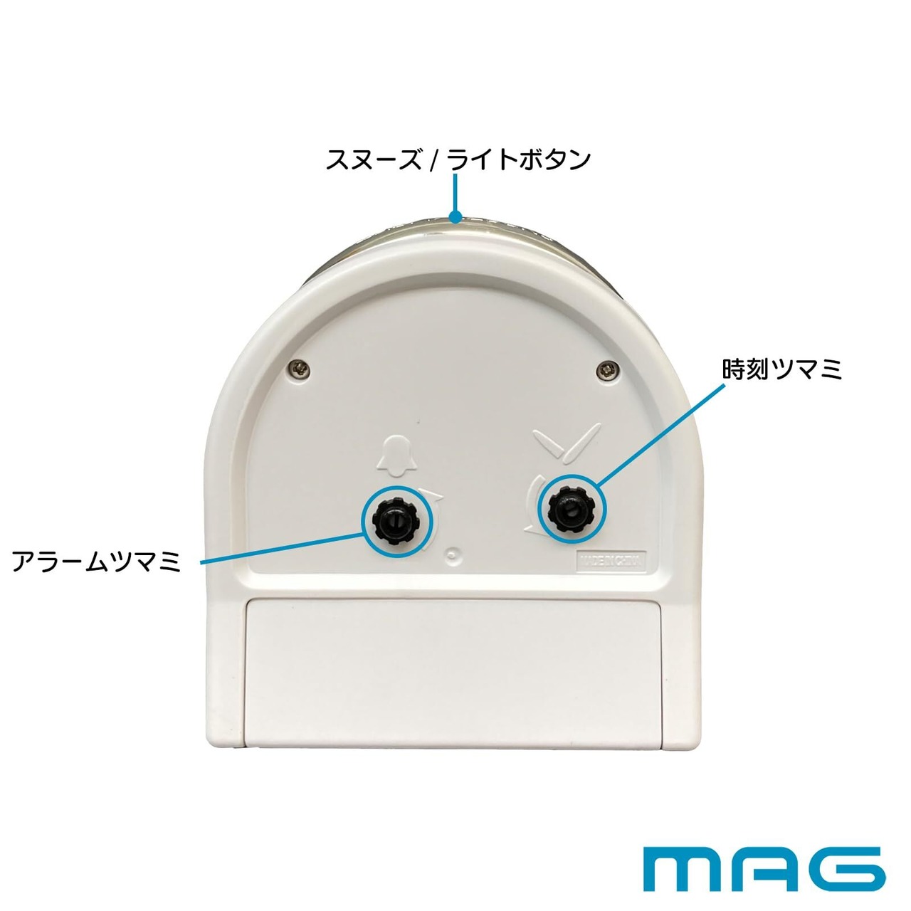 MAG(マグ) 目覚まし時計 置き時計 小型 小さい アナログ 見やすい 静音 連続秒針 電子音 アラーム スヌーズ ライト ホワイト 蛍 AT-730 WH-Z ノア精密