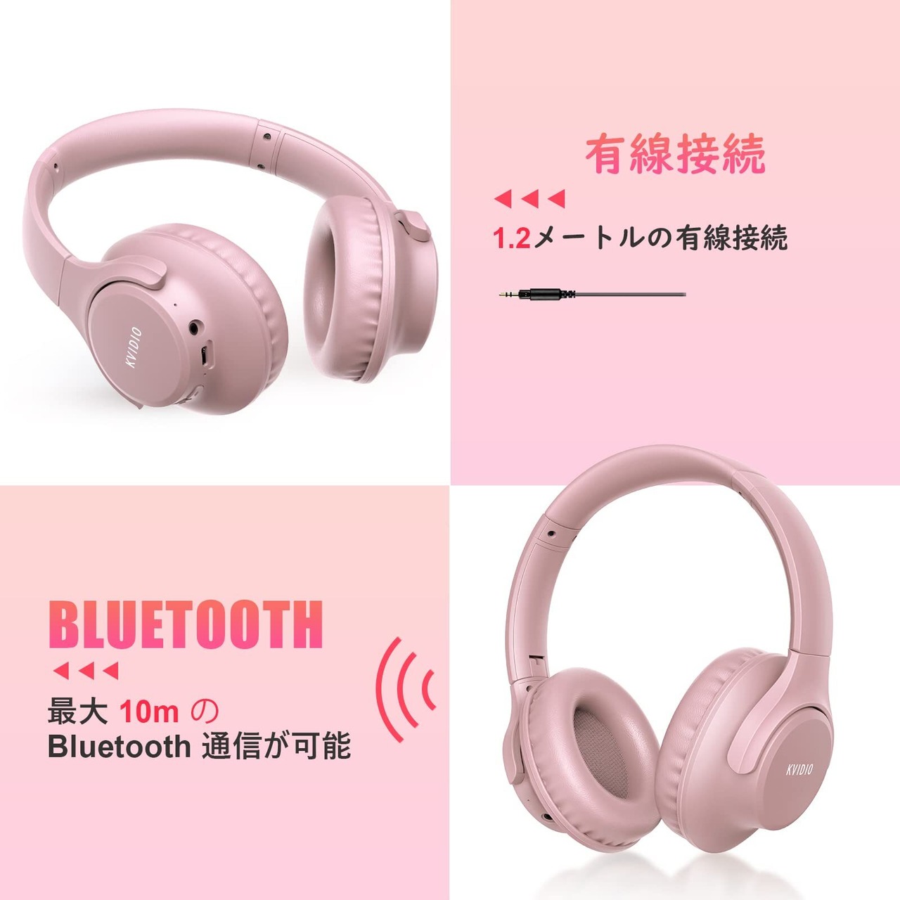 【在庫セール】ワイヤレス ヘッドホン KVIDIO Bluetooth 5.0 55時間再生 ヘッドホン 40mm HD ドライバーユニット オーバーイヤーヘッドホン マイク内蔵 ヘッドホン 有線 無線 両用 遮音 密閉型 ハンズフリー通話可能 ブルートゥース ヘッドフォン ブラック (ピンク) | lcsshop