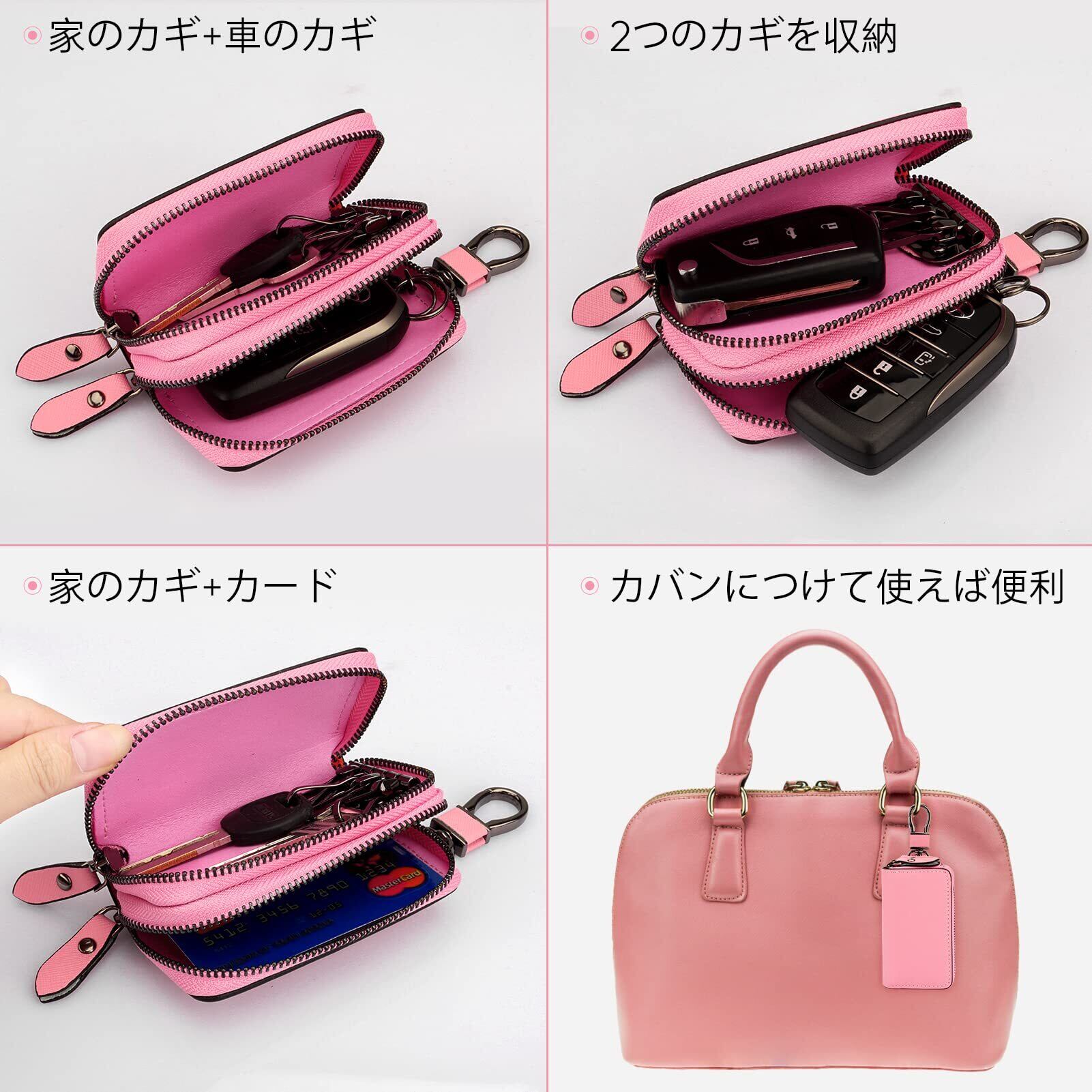 [AYOBEI] キーケース メンズ レディース スマートキーケース 2つ 鍵が同時収納 キーケース ダブルポケット 革 多機能 便利 (ピンク)