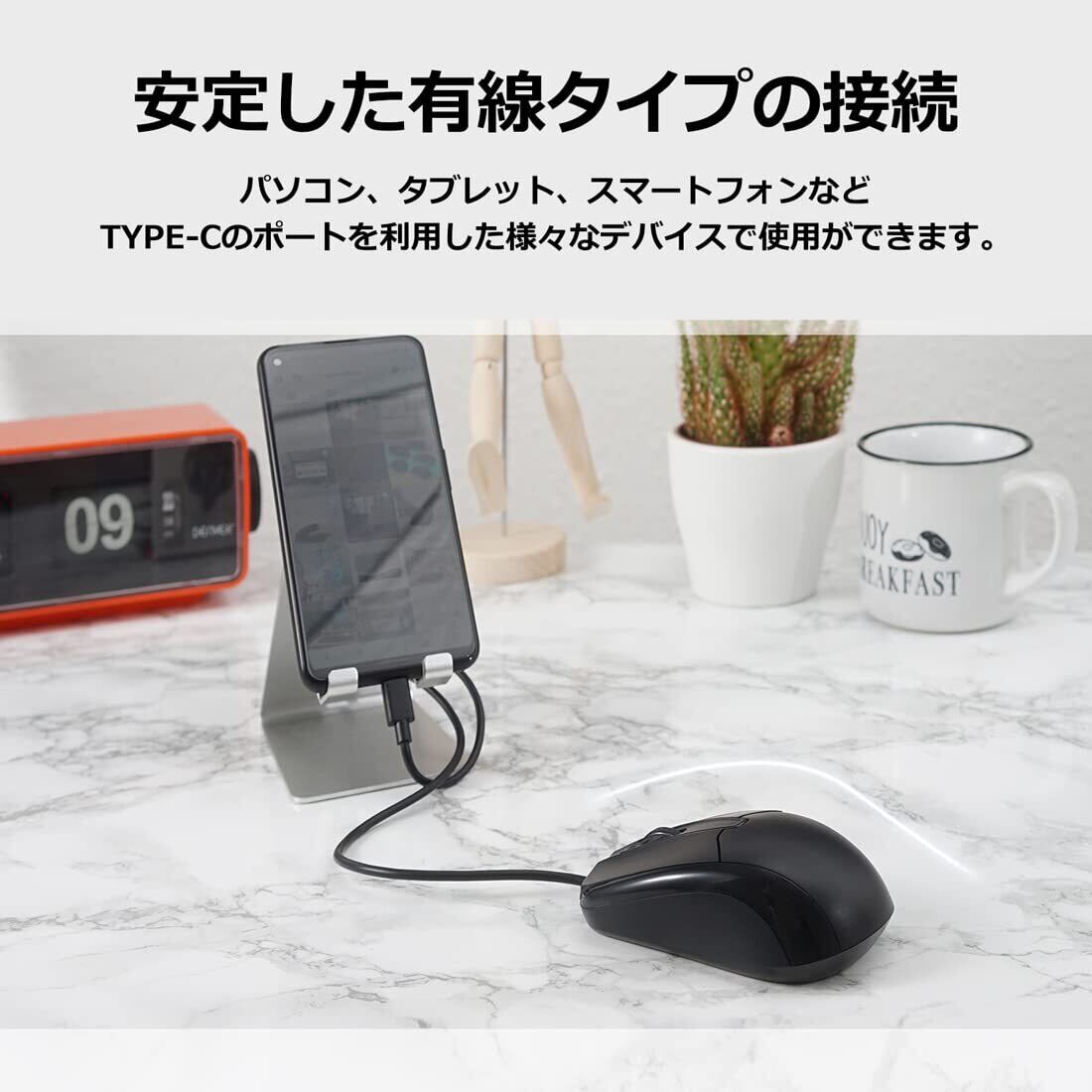 【次世代規格のタイプC】タイプCのUSBを採用したベーシックなマウスです。USBのポートが足りないけどType-Cのポートが余っているときに、おすすめです。