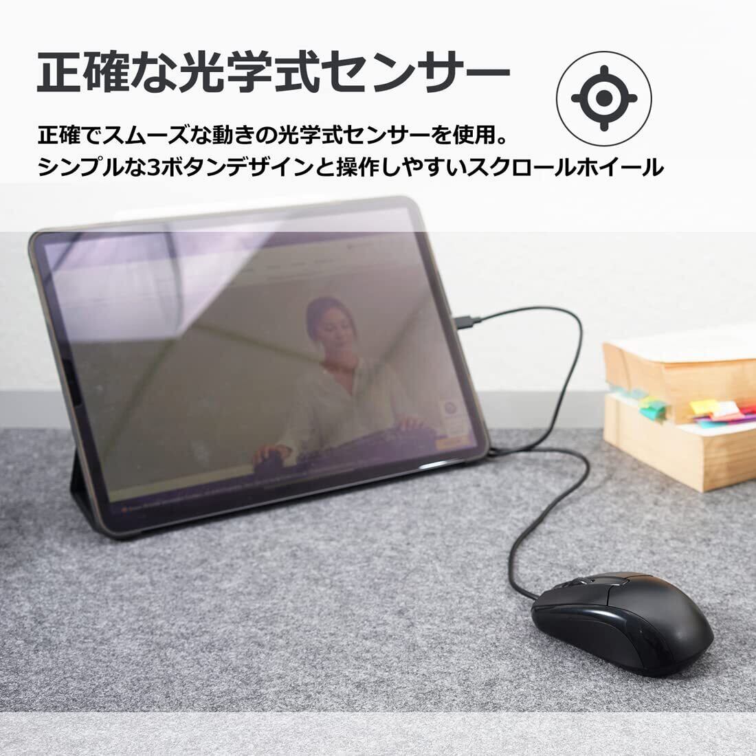 【高精度1000 DPI 】正確でスムーズな動きの光学式センサー使用; シンプルな3ボタンデザイン。操作しやすいスクロールホイール