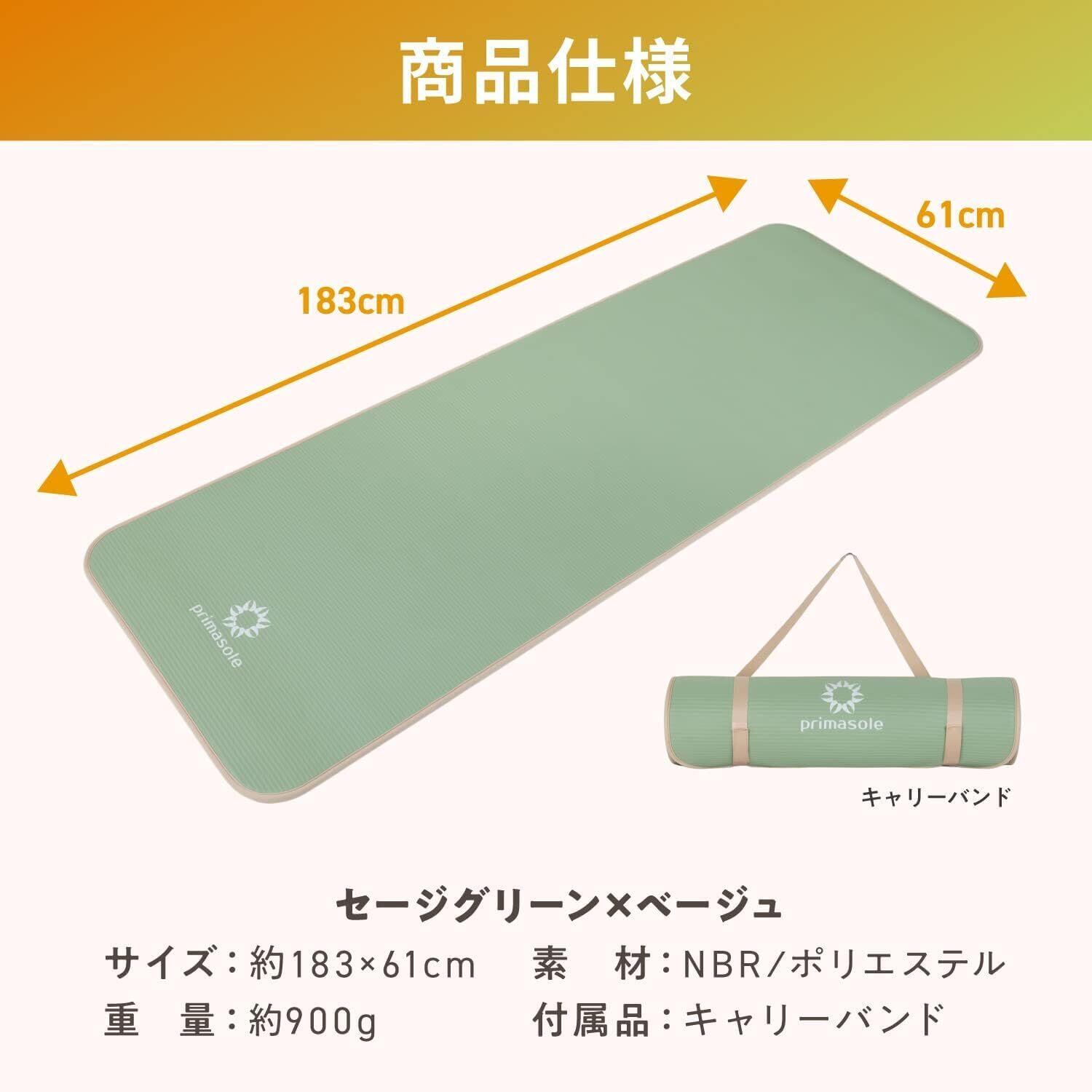 プリマソーレ ヨガマット 10mm エッジガード トレーニングマット セージグリーン アースブラウン 厚め 幅広 エクササイズマット フィットネス ピラティス 筋トレ