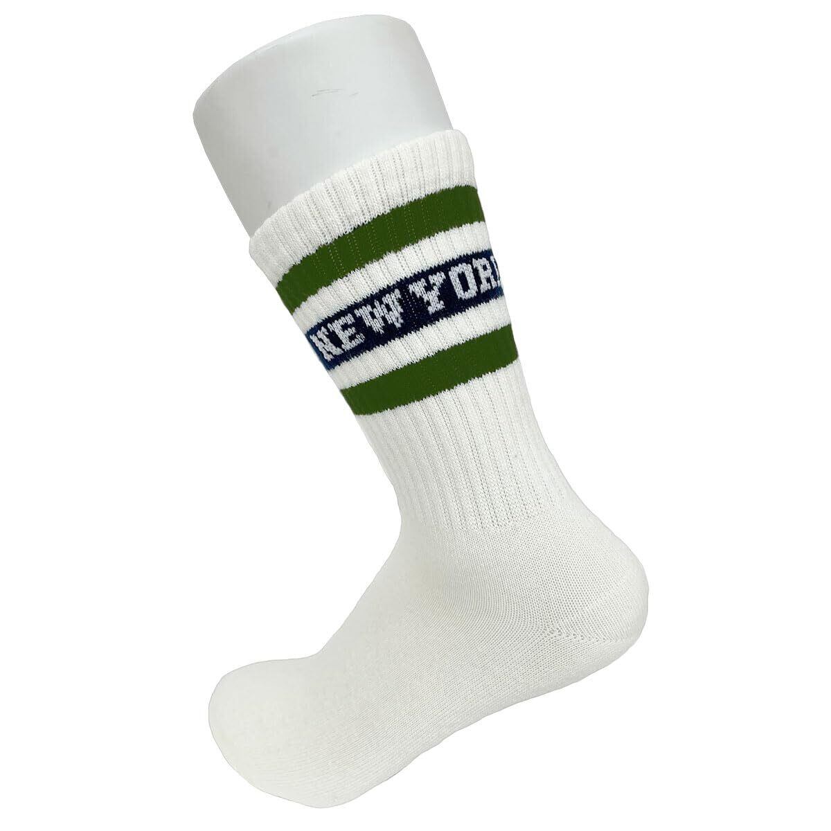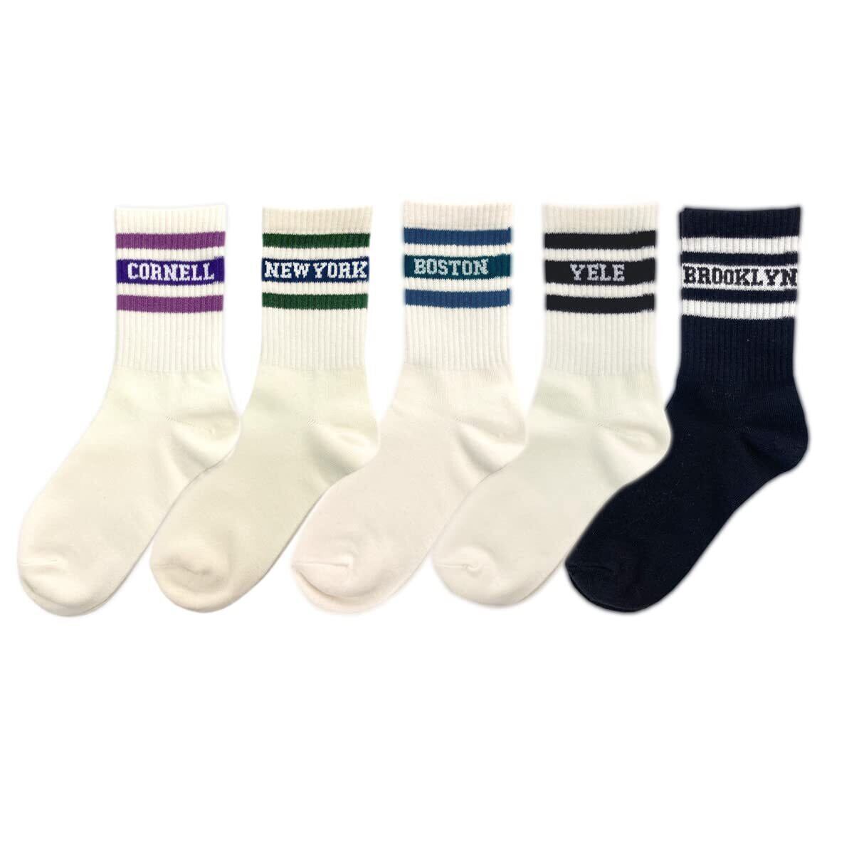 [Little Budding] カレッジロゴ 靴下 レディース ラインソックス クルー丈 カジュアル スポーティー 5柄5足組(22~25㎝)