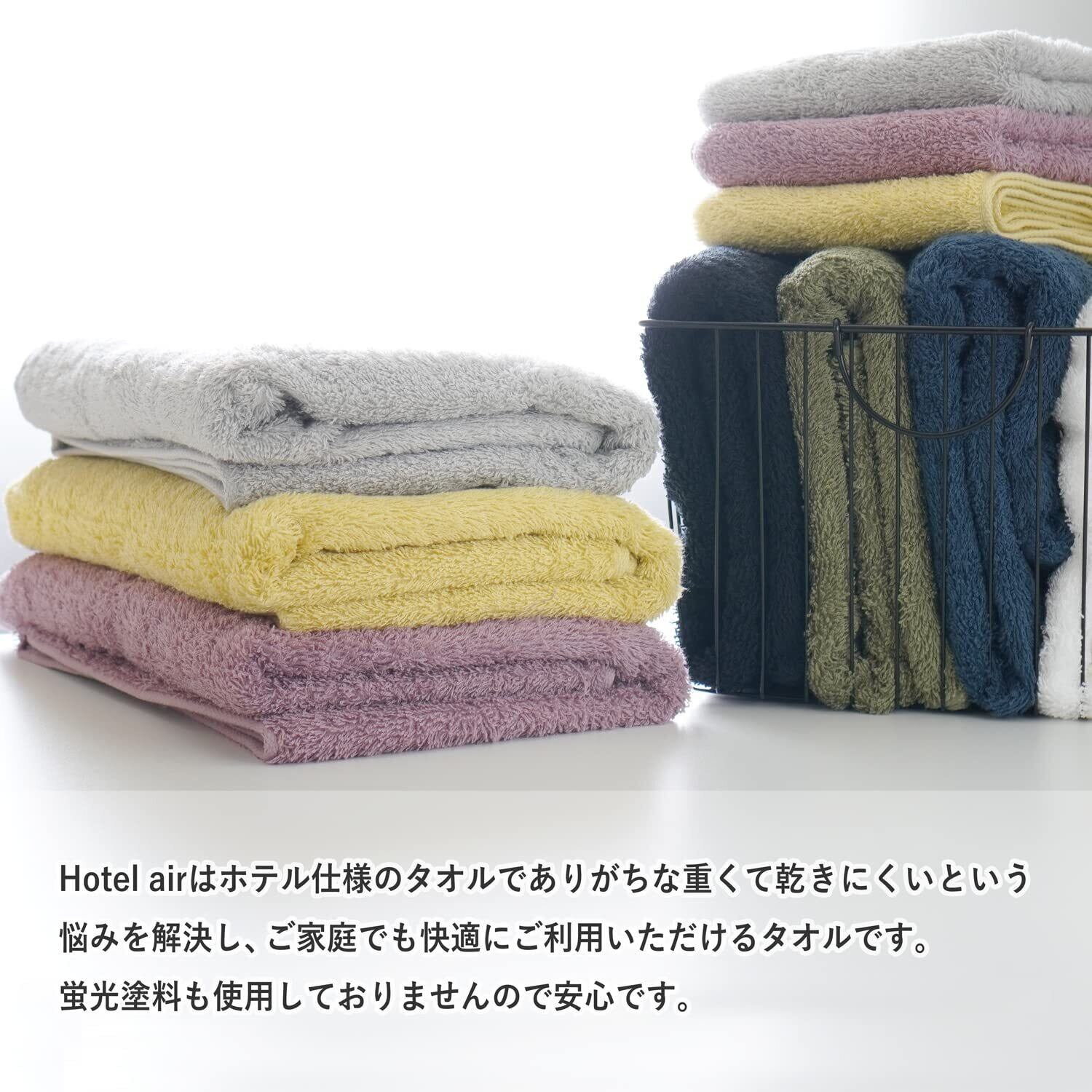 ・ホテル仕様のタオルはボリュームがある分厚みもあって重量も重いのが特徴ですが、新製法により同等の規格商品よりも12%近く重量を下げることに成功。 ホテルタイプのタオルにありがちな、重さと乾きにくさの悩みを解決しました。 もちろん蛍光染料不使用で、ベビーやお肌の敏感な方でも使える様、安心・安全に作られています。