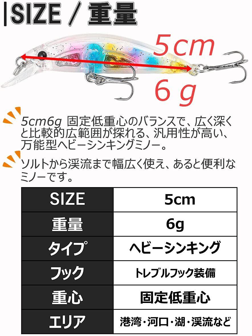 汎用 ルアー セット ヘビーシンキング ミノー 5cm 6g メバリング トラウト