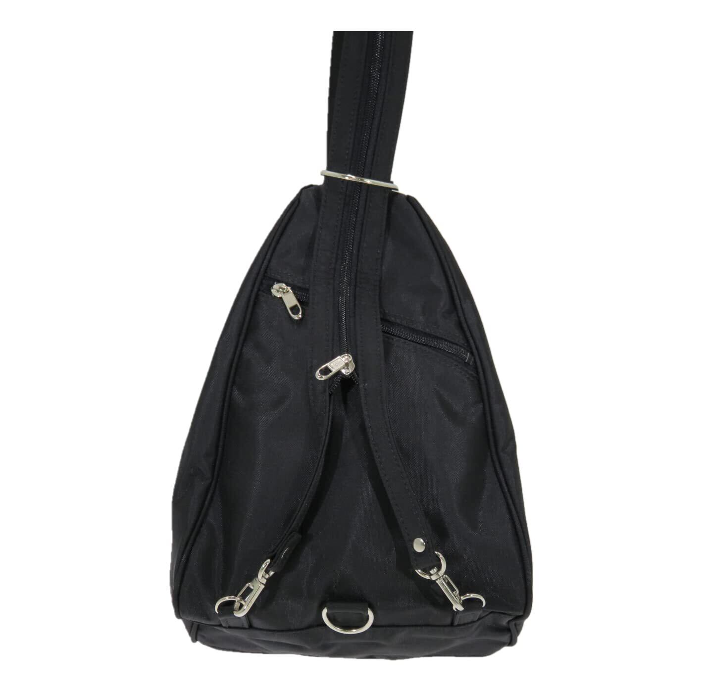 日本製(兵庫県豊岡市で縫製)のナイロンリュック。背面部分のファスナーを開けると「リュック」として、ファスナーを閉じると「ショルダーバッグ」として使用できる2WAYタイプのバッグ。ファスナーポケットが3つあるので収納に困りません。
