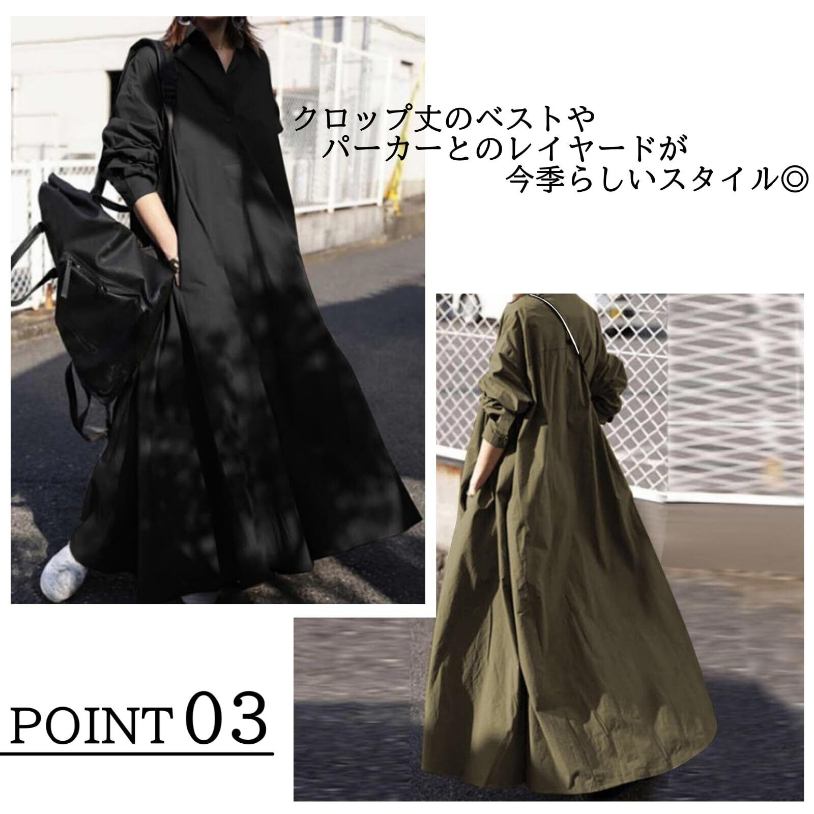[link bleu] リンクブルー ロング シャツ ワンピース A ライン マキシ フレア オーバー サイズ ゆったり 長袖 無地 レディース