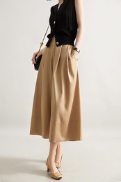 ウエストはゴム+ボタン仕様でストレスフリーな履き心地です。ウエストのギャザーとタックで縦ラインを強調して、腰周りをカバーしてスッキリとした印象になります。素材はさらっとしていて風通しもよく、着心地の良い素材です!デザイン性も高く、様々なトップスにも合わせることができる万能なボトムスです。カジュアルなお出かけにもピッタリで、自由に着回すことができるのも魅力の一つです。お腹周りから足首までしっかりと体型をカバーしてくれるので、気になる部分もしっかりとサポートしてくれます。