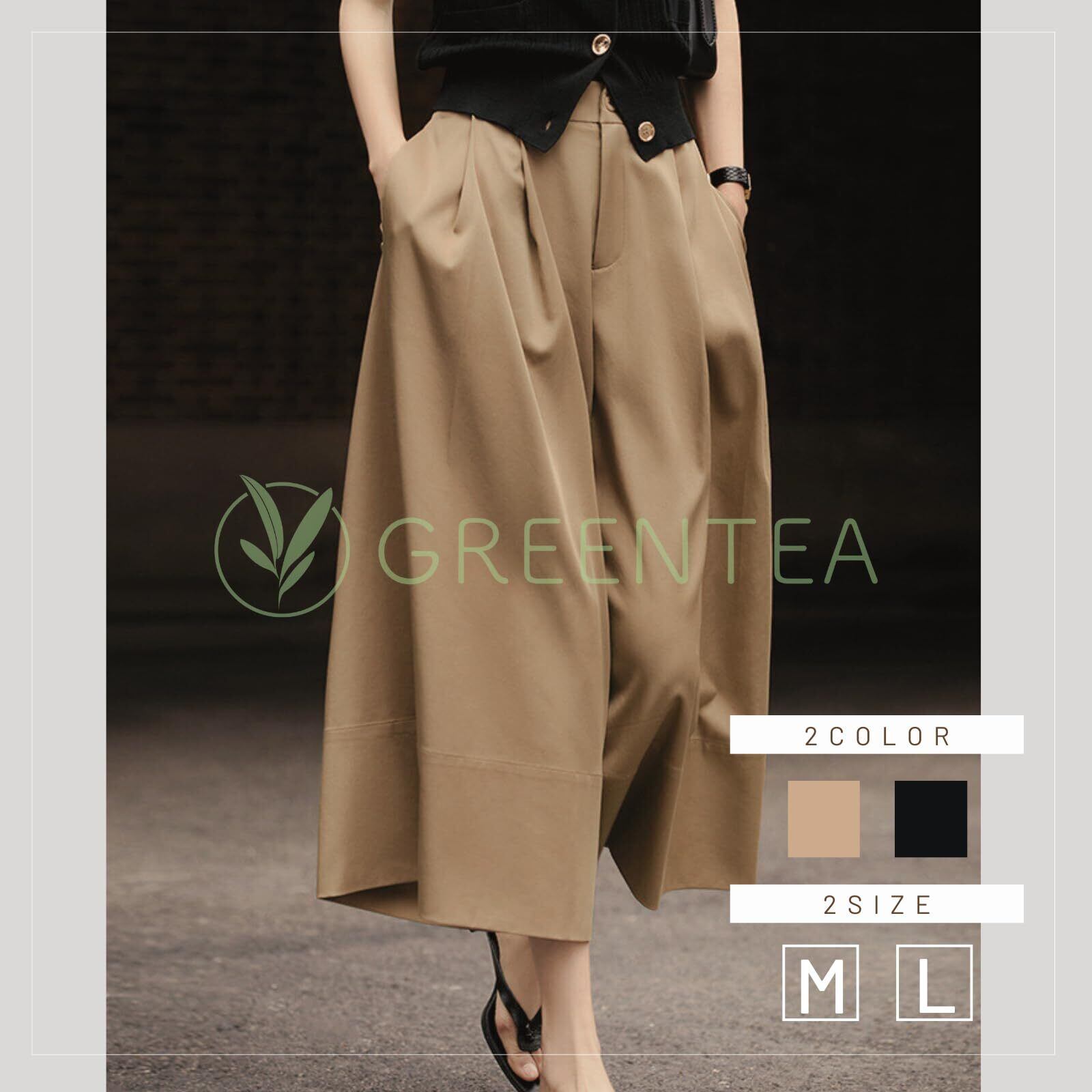 [Greentea] [グリーンティー] ワイドパンツ 8部丈 ロング レディース ゆったり 楽ちん きれいめ