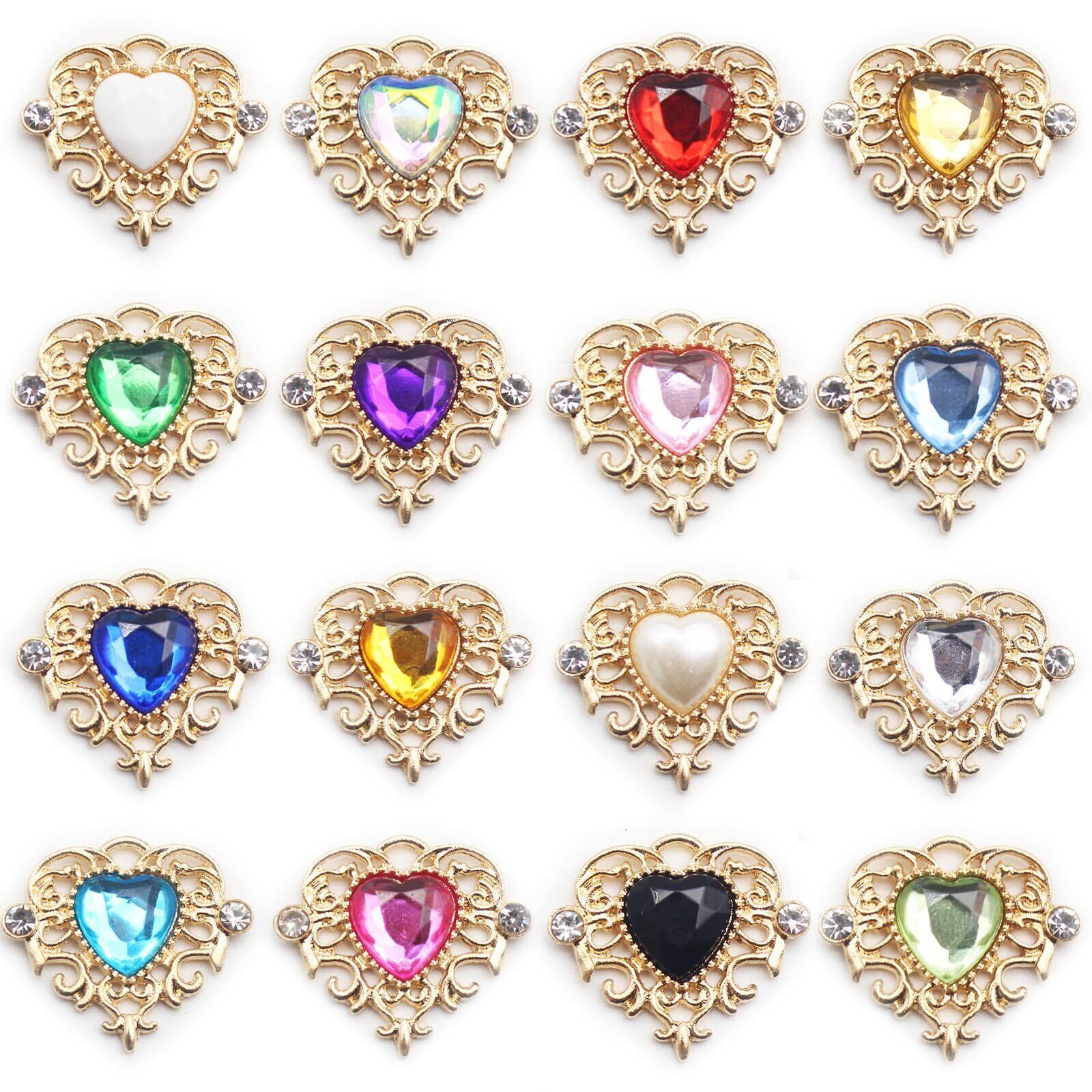 【人気商品】[BTtime] ビジューパーツ 台座つき 16個セット ビジュー ハート パーツ センターパーツ セット ストーン チャーム パーツ ジュエル デコ素材 ブローチ アクセサリーパーツ DIY製作キット ゴスロリ/ロリータ アクセント 貼り付け エレガント 豪華 ビジューキラキラ 目立つ | lcsshop