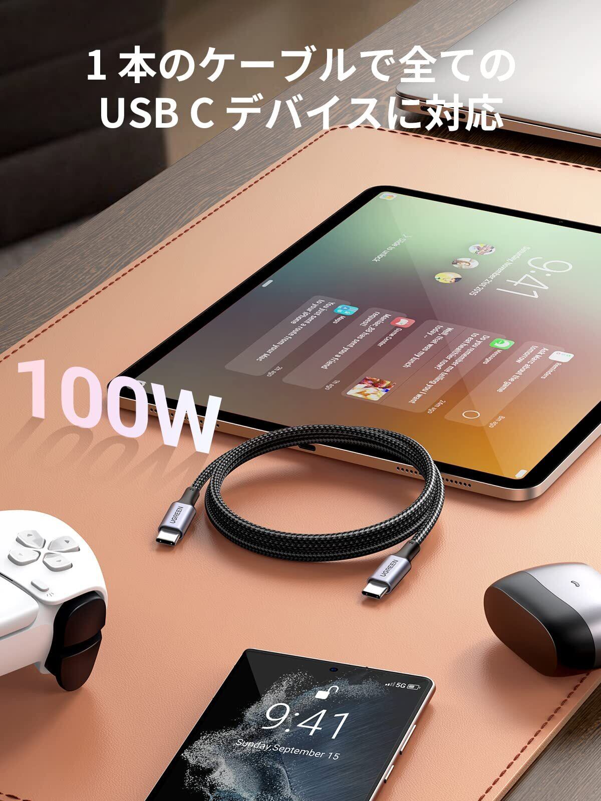 【最大100Wの超高速充電対応】UGREEN usb c ケーブルはUSB PD技術に対応し、最大100W (20V×5A)まで安全かつ安定して出力できます。PD充電を実現するために、デバイスとアダプタはPD機能をサポートする必要があります。100W 87W 61W 45W 30W 18Wの電力供給PD急速充電をサポートします。 【ビデオ出力をサポートしていません。】