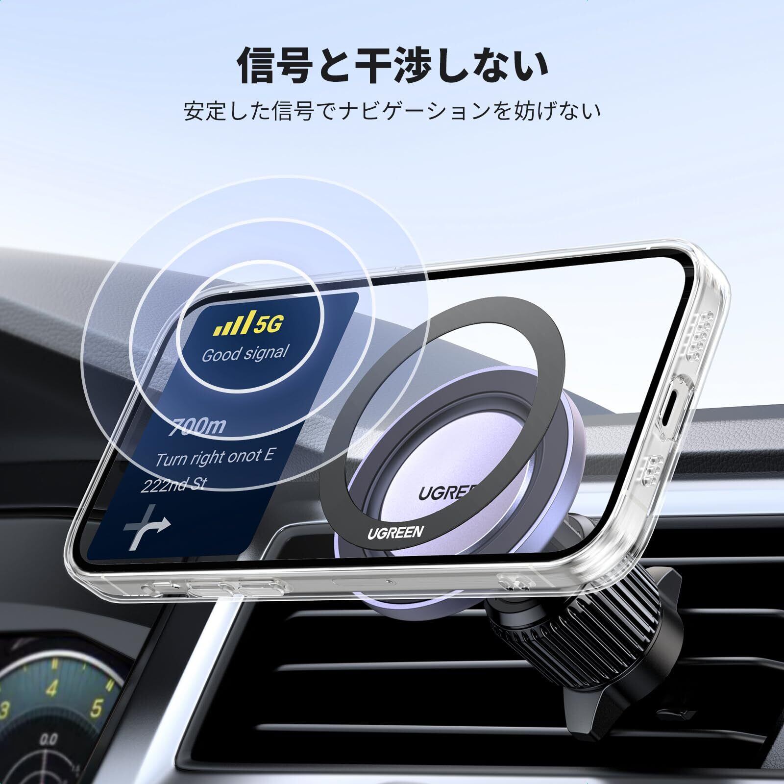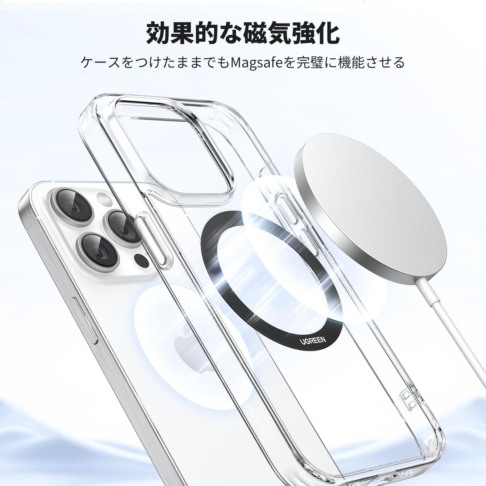 UGREEN メタルリング MagSafe対応 リング ワイヤレス充電対応 磁気増強 マグセーフ iPhone15 14 13 12シリーズ対応 Galaxy スマホ対応 スマホリング 貼り付け簡単 2枚入り