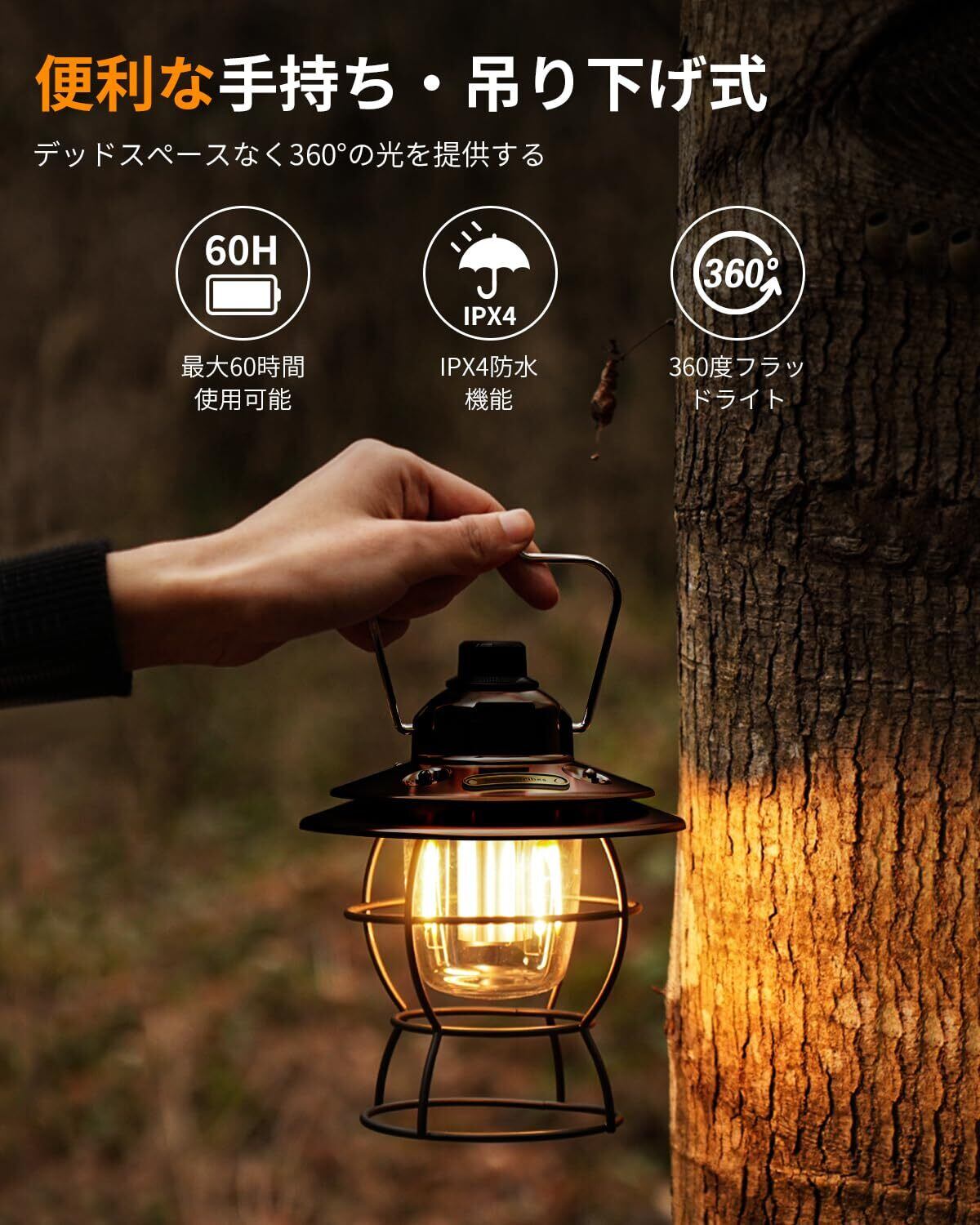 ランタン USB充電式, ビンテージ キャンプランタン 60時間(Max)まで使用可能 アウトドア灯具 金属製 3色切り替え【昼光色・電球色・混色】 アウトドアキャンプ ハイキング 防災 停電 ロマンス ギフト