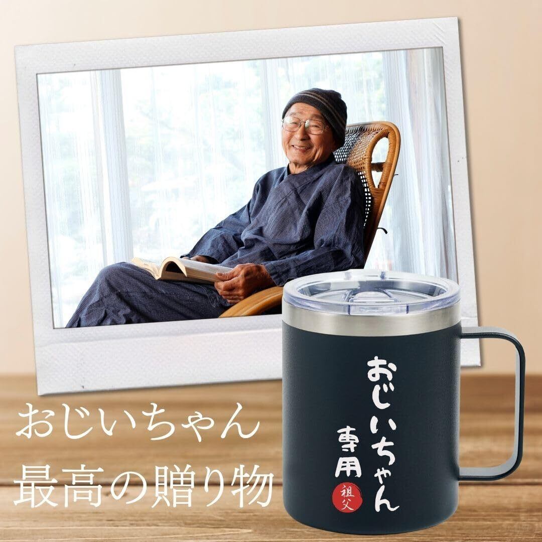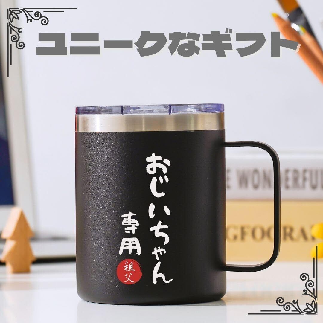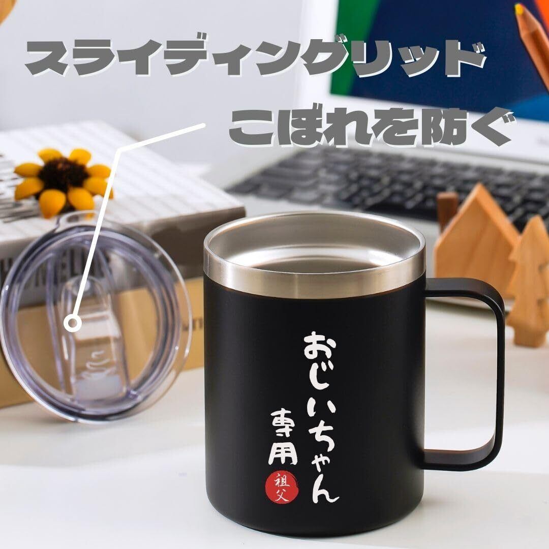 おじいちゃん プレゼント 誕生日 敬老の日 父の日 水筒マグカップステンレスタンブラーふた付 感謝の気持ちを伝えてくれてありがとうおじいちゃんメッセージ (350ml 黒) 専用