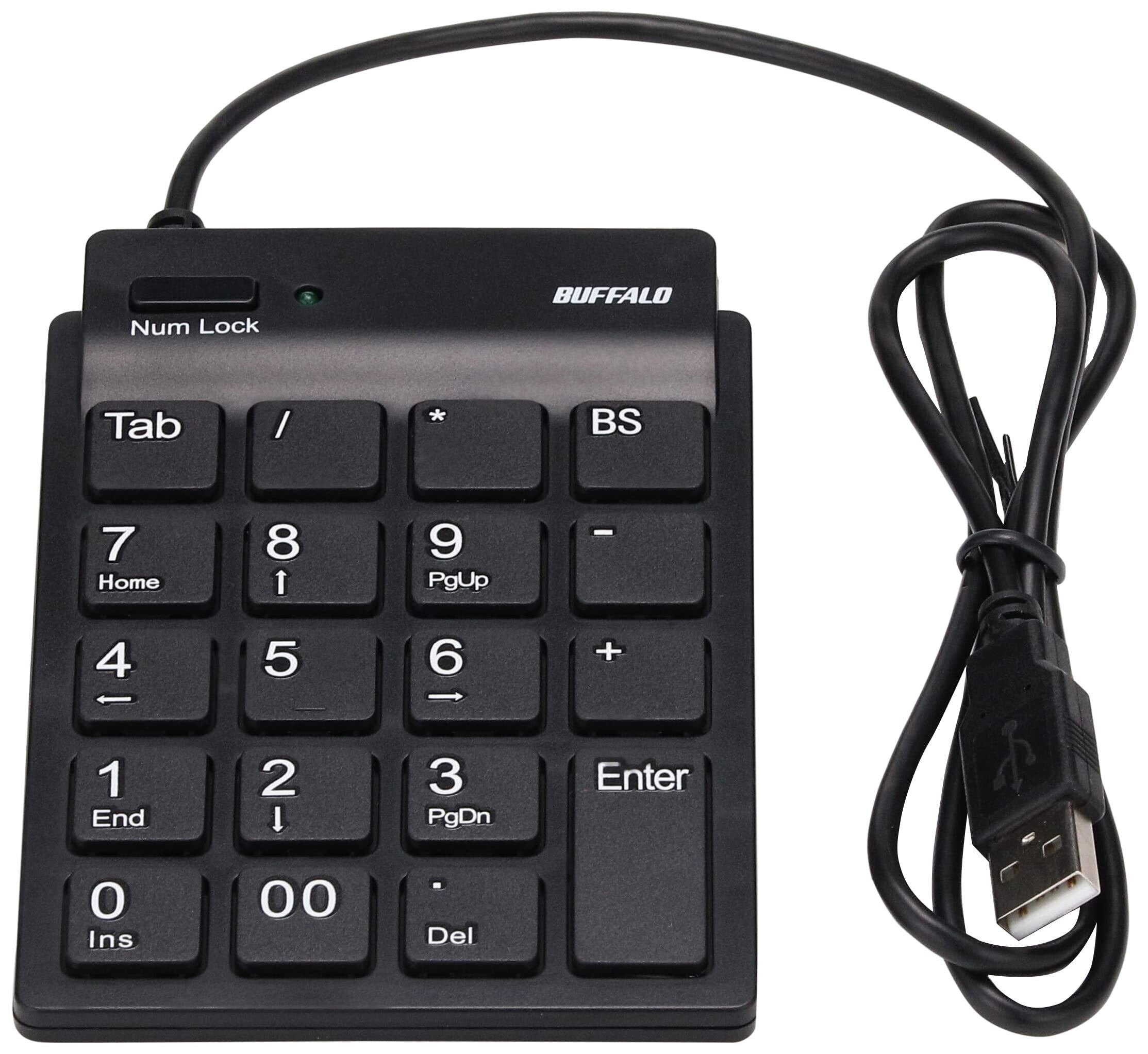 バッファロー BUFFALO 有線スリムテンキーボード ハブ付き ブラック BSTKH08BK