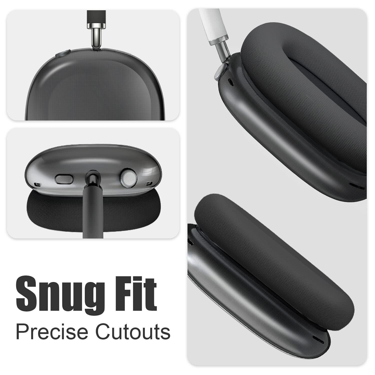 AirPods Max対応ケース、柔らかいTPU透明ケース傷防止、Max ヘッドホン用保護カバー薄型、スマートケースに収まる(透明-グレー)