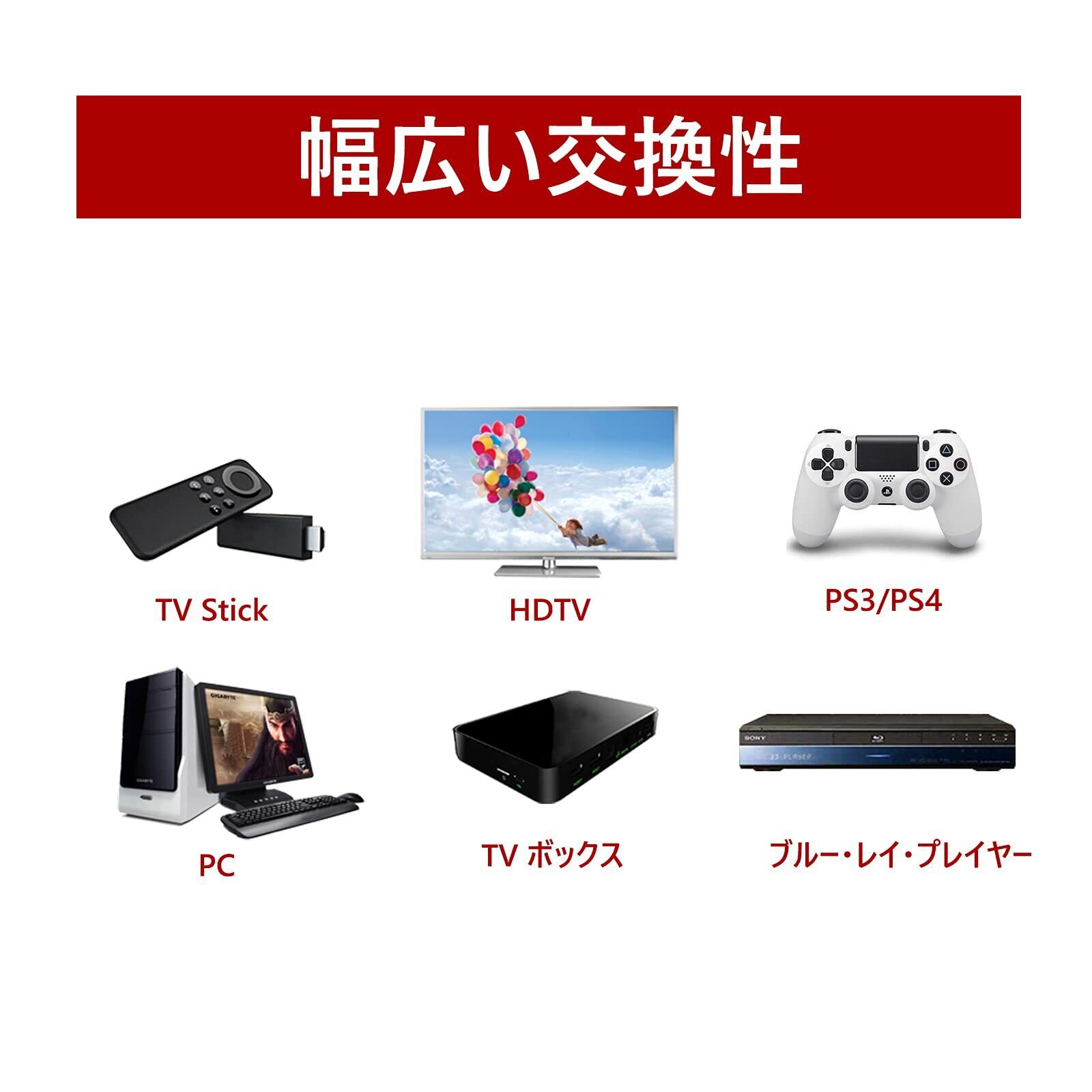 幅広い交換性:TV Stick、PC、TV、HDTV、PS3、PS4、Switch、Xbox、プロジェクター等、標準HDMI端子(HDMIタイプA)を備えた全てのデバイス対応できます。