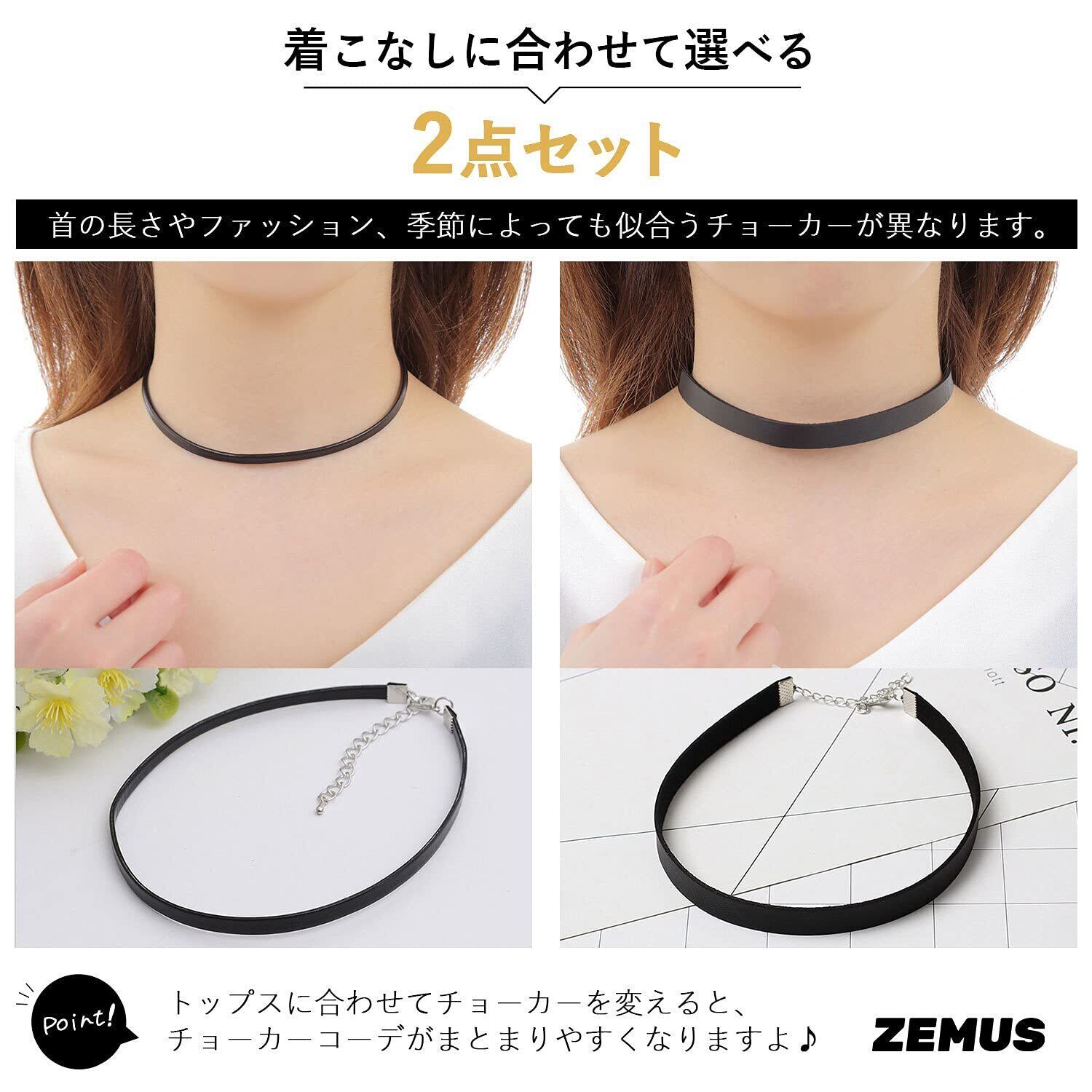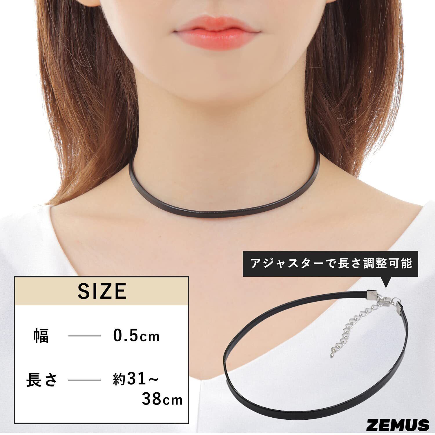 幅:0.5cm〜1cm、長さ:約31〜38cm。材質:フェイクレザー (ブランド:ZEMUS、商品名:シンプル チョーカー 黒 レディース 2個セット)