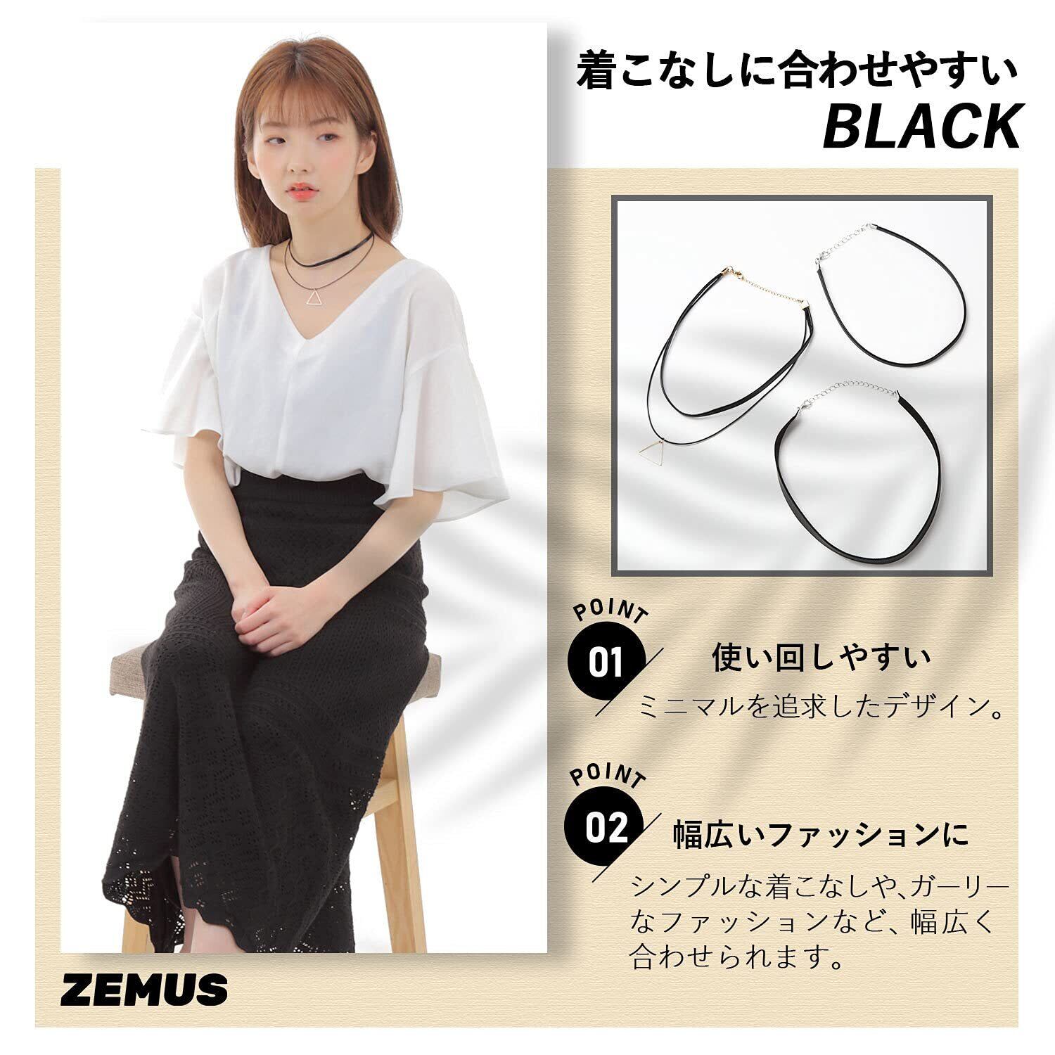 [ZEMUS] シンプル チョーカー 黒 レディース 2個・3個セット