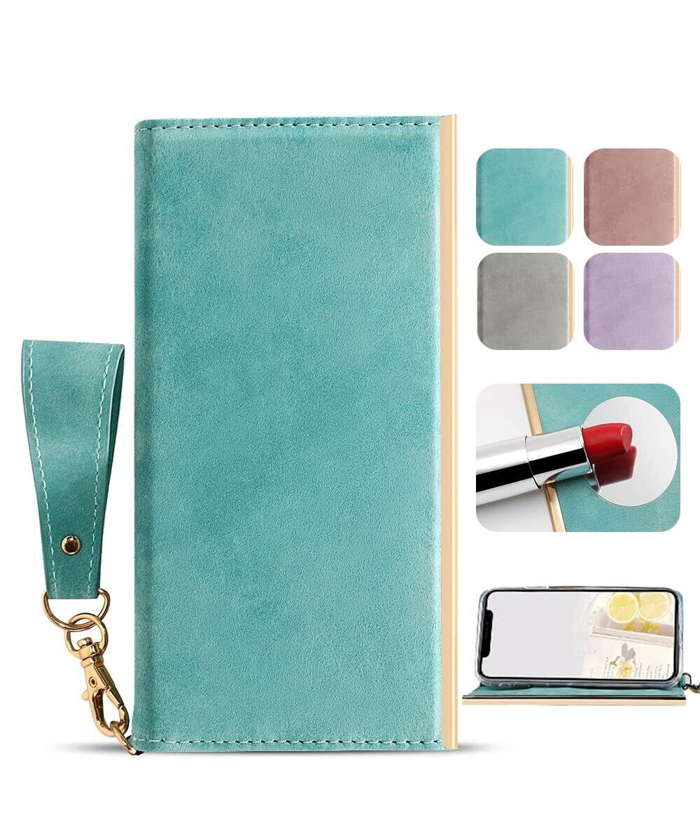 iPhone 13 ケース 手帳型 鏡付き マグネット式 スマホケース 財布型 アイフォン13カバー カードポケット スタンド機能 携帯ケース ダイアリーケース PUレザー 女性 耐衝撃 全面保護 ファッション おしゃれ 美しい グリーン