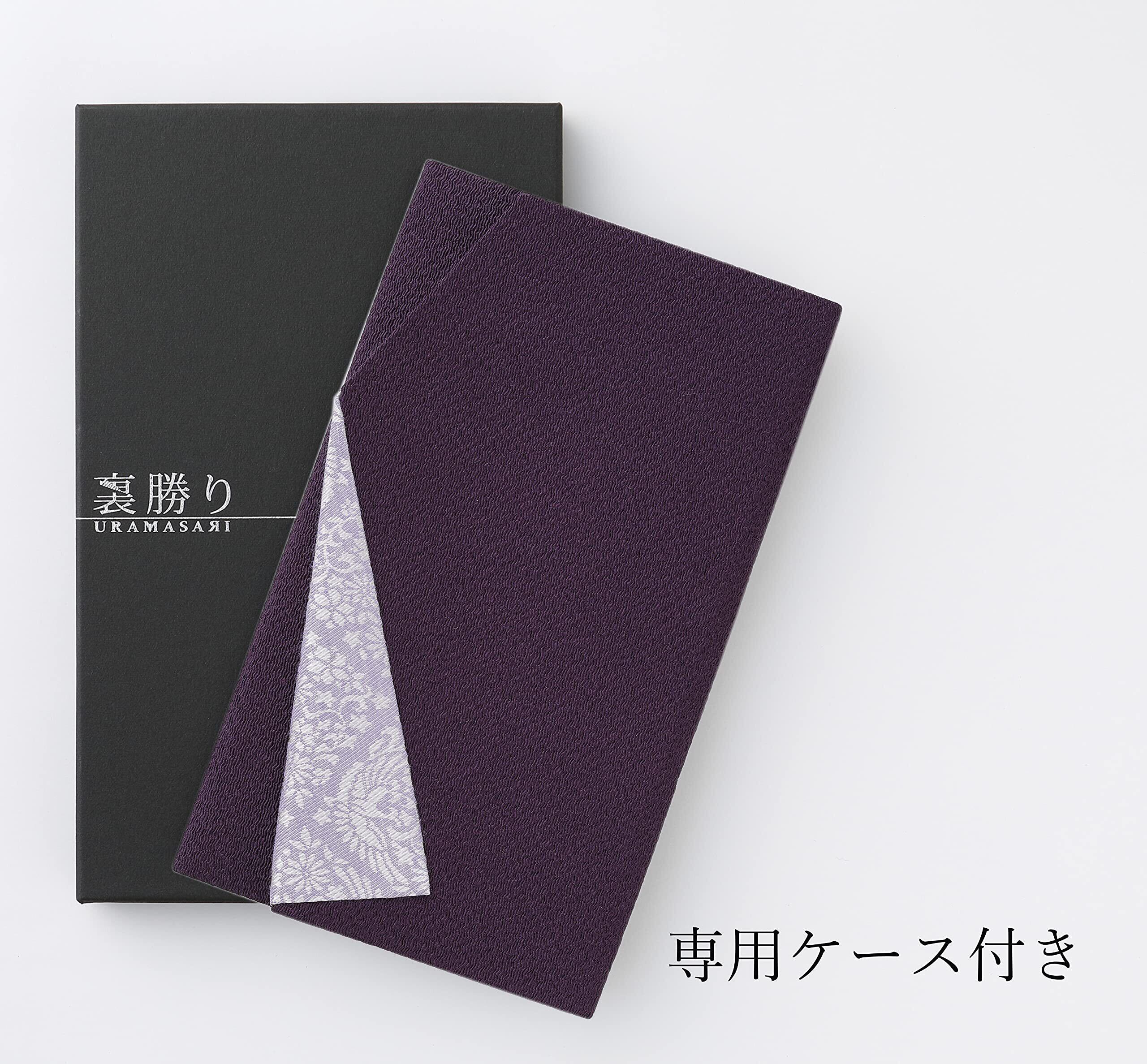 <男女両用 オリジナルカラー>「紺×花菱子葵」 「紫×鳳凰」の2カラー。当社だけのオリジナルカラーでご用意しています。 格調高く、おしゃれな色使いで、年齢、性別を問わず、慶弔どんな場面でもどなたにもお使い頂けます。<ポケットタイプで使いやすい> たたむタイプの袱紗とちがって、ポケットに差し込むだけ。スマートに出し入れできます。