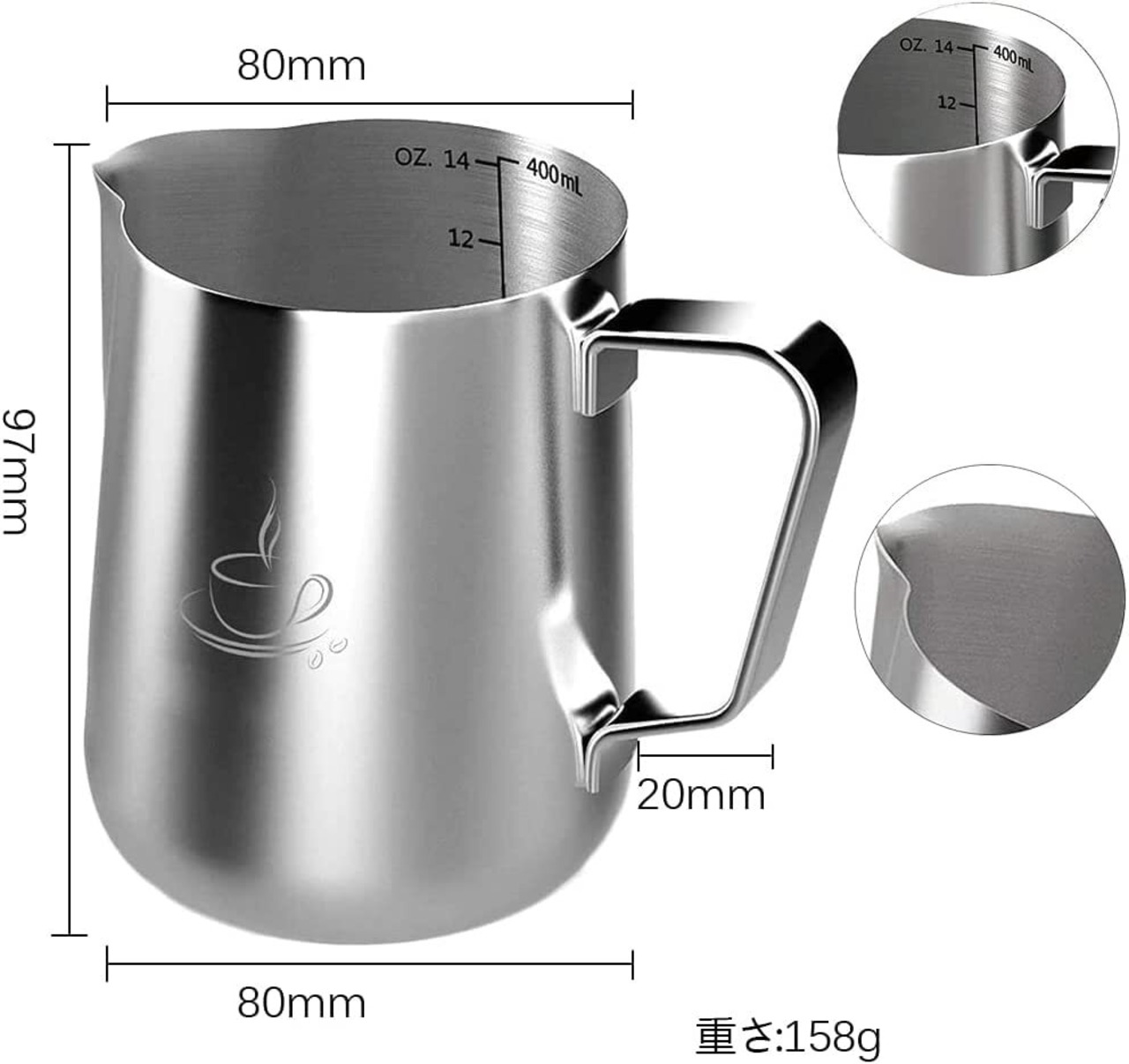 ステンレス製 ミルクジャグ ミルク ピッチャー ステンレススチール ラテアート ピッチャー ラテ ミルク 400ml (14oz)1