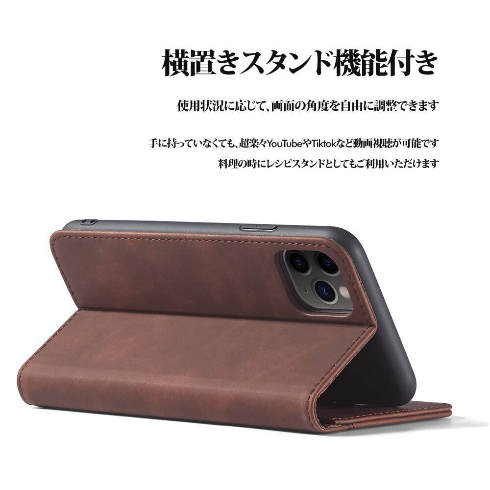 iPhone 11/11 Pro/11 Pro Max 手帳型ケース 本革に近い手触り (iPhone11, ダークブラウン)