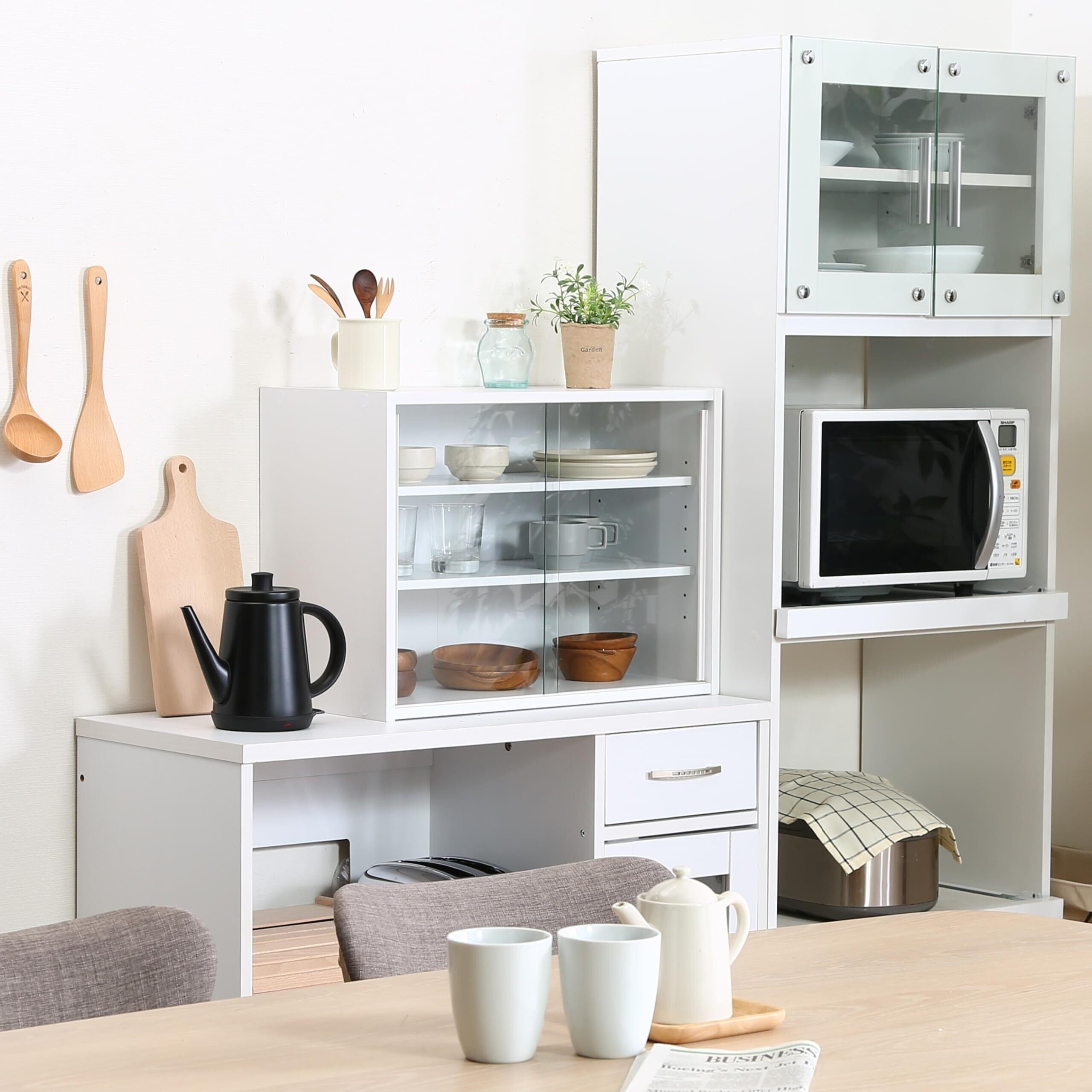 不二貿易 食器棚 キッチン収納 幅60×奥行29×高さ44cm ホワイト ガラス扉 可動棚 組立品 99437