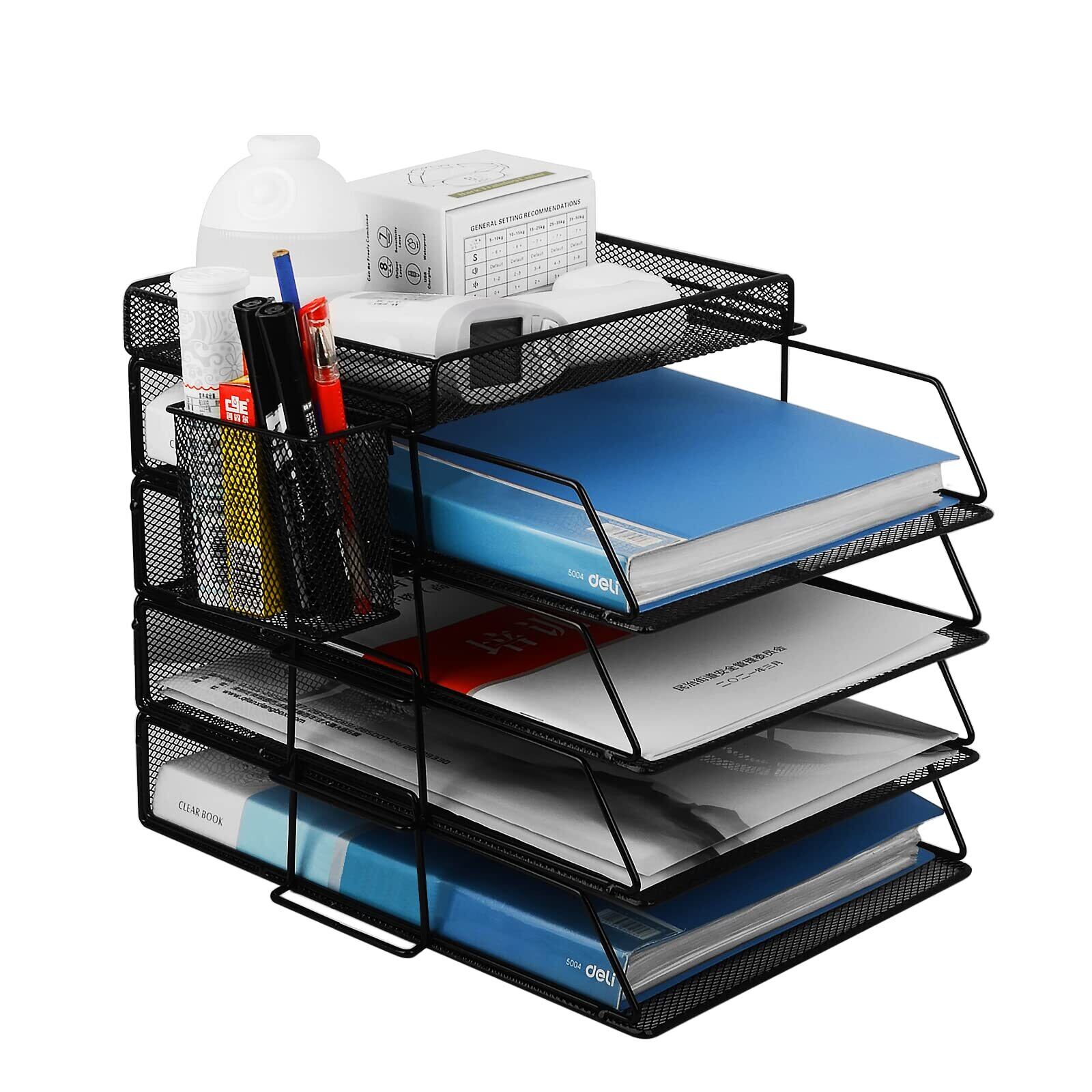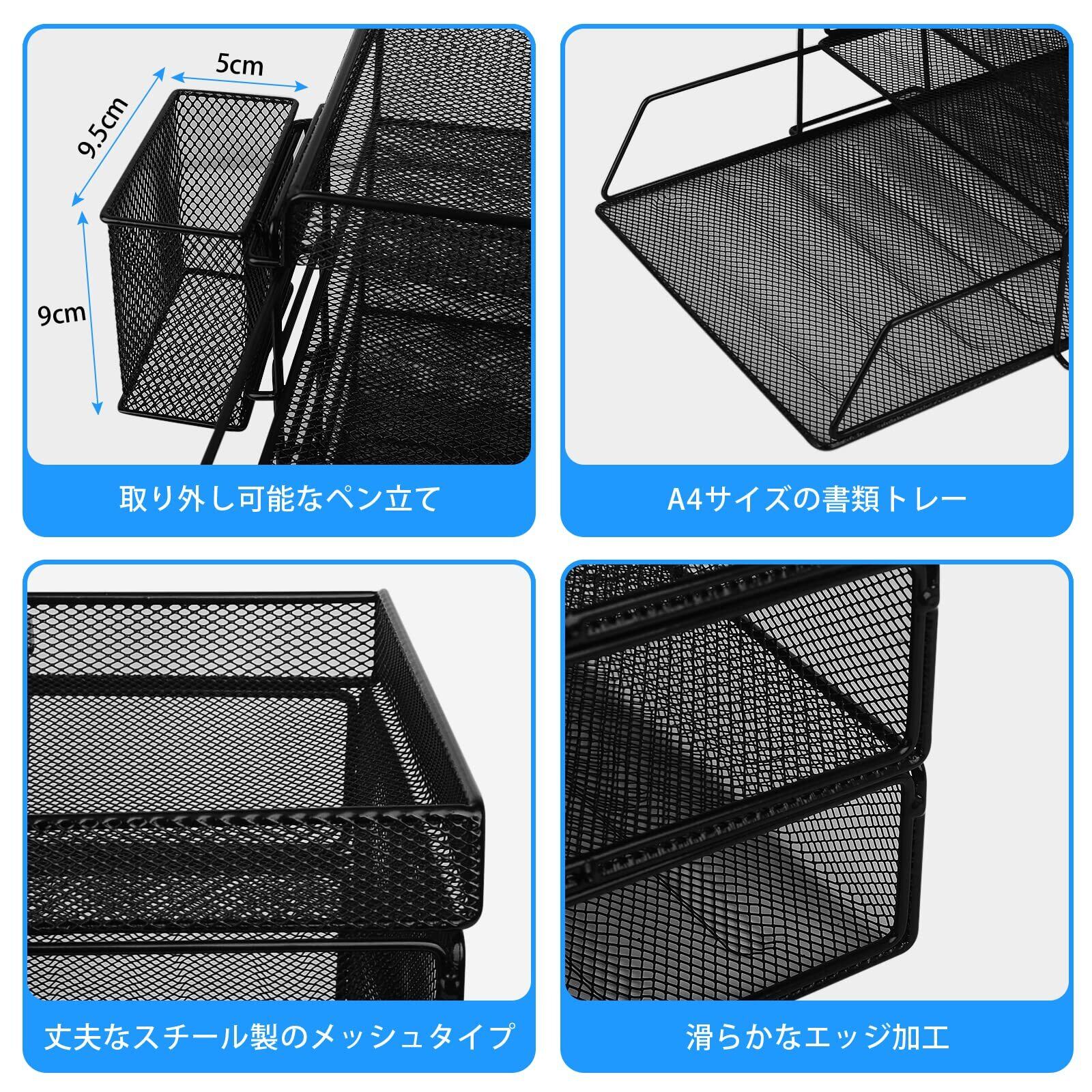書類トレー 4段 縦置き 卓上収納ラック A4レターケース ファイルボックス 書類整理 小物入れ ペン立て 文房具収納 オフィス おしゃれ ブラック (4段, ブラック)