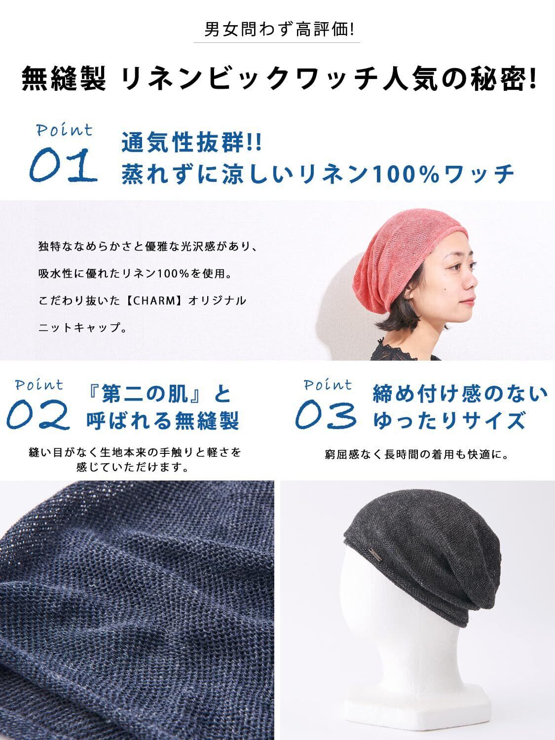 [CHARM] ゆったり 無縫製 サマーニット帽 ( 日本製 ) 蒸れずにずっと快適 ( フリーサイズ / 男女兼用 ) 麻100% 大きいサイズ ワッチ