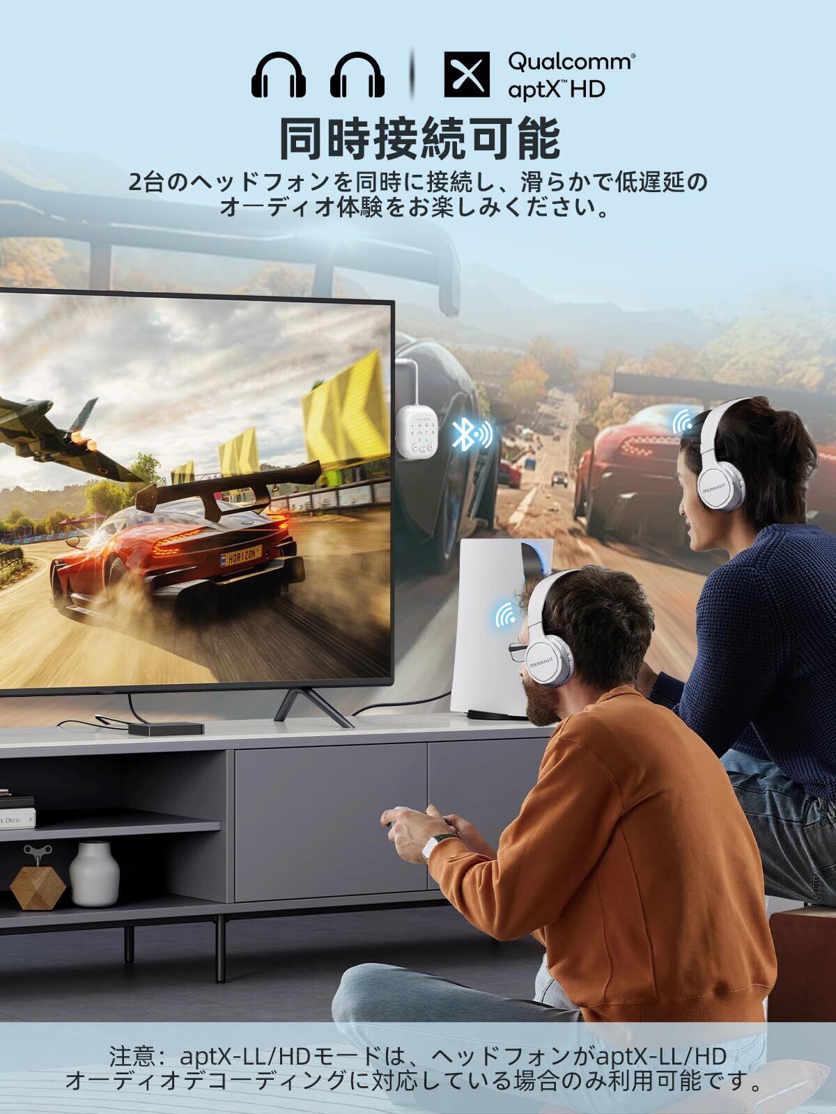 Bluetooth 5.4 ワイヤレスオーディオトランスミッター&レシーバー (受信機 + 送信機 一台二役) Aptx低遅延 対応 2台同時接続 24時間連続運転 AirPods ヘッドフォン PC TV ジム 車載用 飛行機旅行にも最適