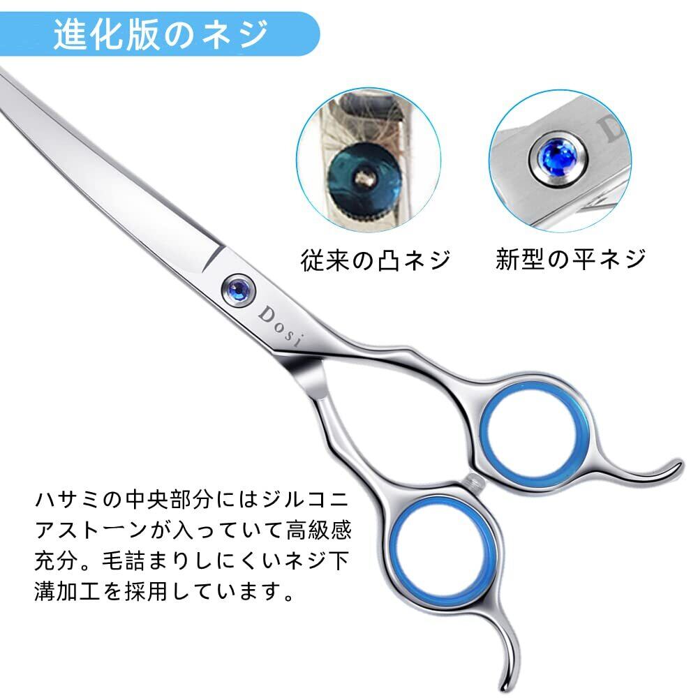 7インチ カーブシザー トリミングシザー 下向き&上向き兼用 丸い先端 曲がった刃 高級鍛造仕上 ペットハサミ 犬 猫 トリミング ペット用シザー 鋏 (革ケース付き)