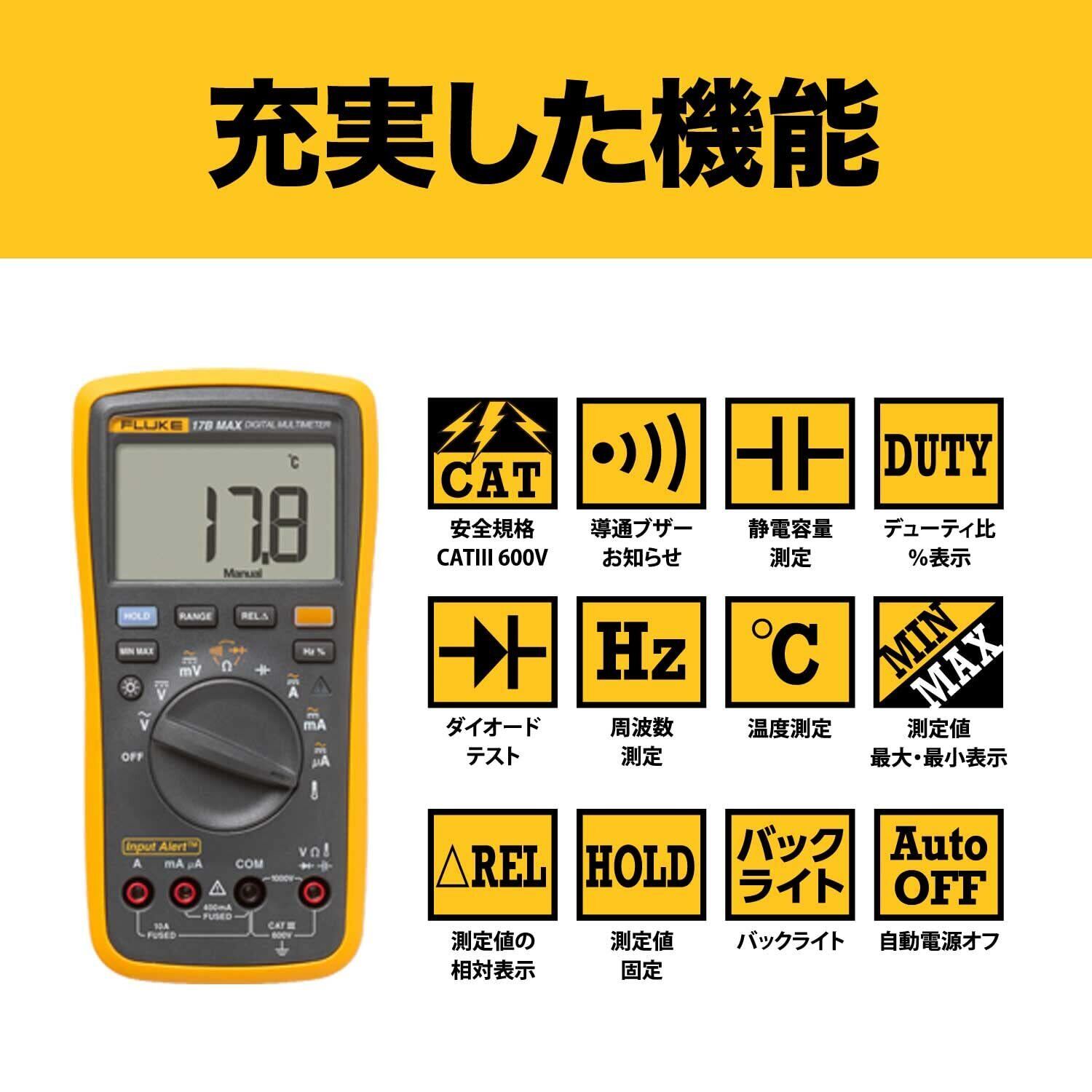 FLUKE 17B MAX デジタル・マルチメーターは、フルーク・マルチメーターの伝統的な設計を継承しつつ、その機能を完全にアップグレードして安全性、正確性、耐久性及び操作性の高い測定要求を満たします。