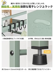 レンジ上ラック キッチン 伸縮式 トースターラック 幅(39-65cm) 伸縮可 オーブンレンジラック 棚板高さ調節可 電子レンジ 台 収納 耐荷重50kg フック4つ付き 組み立て簡単 おしゃれ (グリーン)