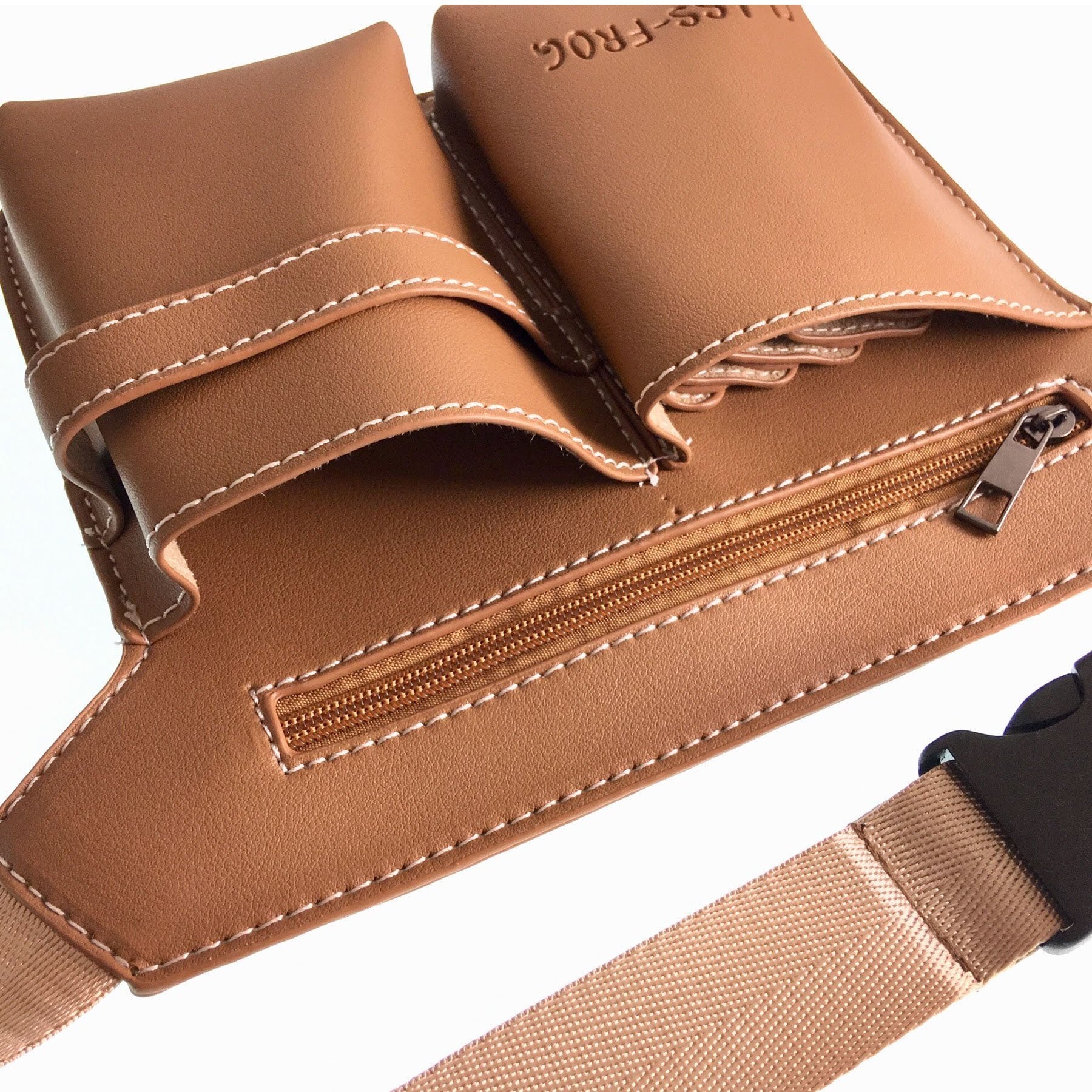 【GLASS FROG】シザーケース ウエストポーチ 5丁挿し 美容師 トリマー 園芸(キャメルブラウン)