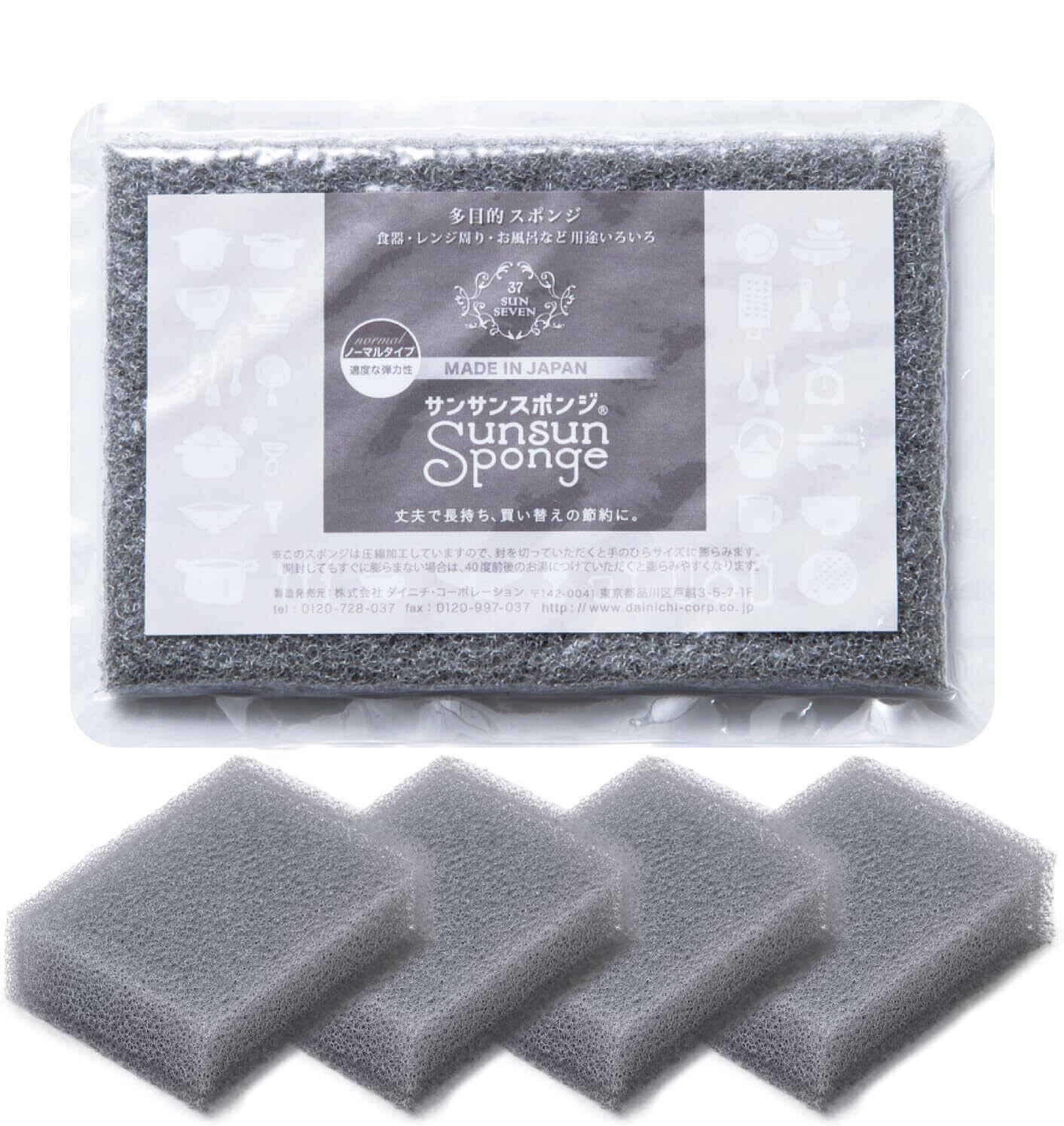 【サンサンスポンジ】スポンジ 4個セット キッチンスポンジ 食器洗い お風呂 レンジ周り 用途いろいろ 驚きの水切れ&泡立ち 丈夫で長持ち 台所用品 キッチン用品 シルキーグレー