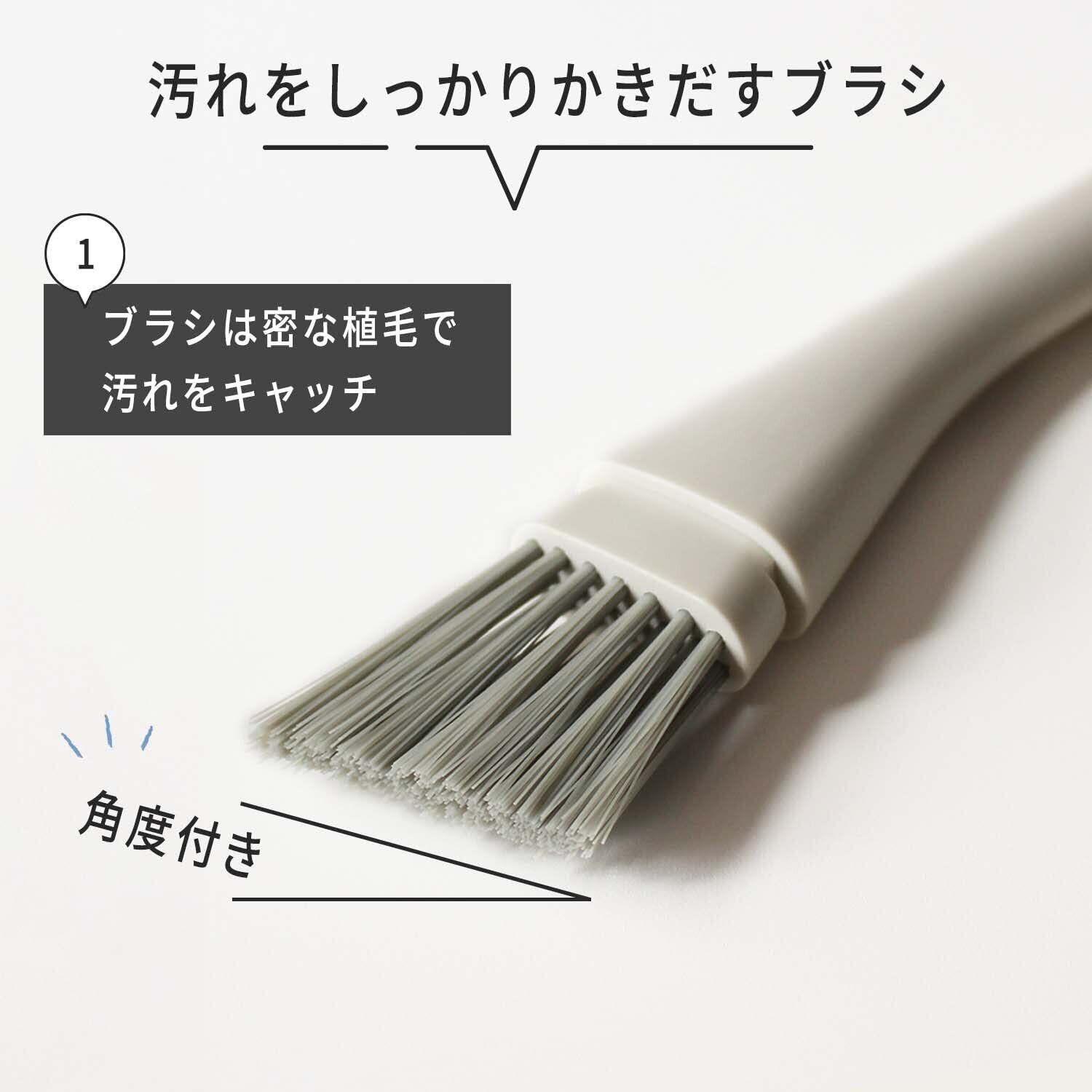 【カバー付きで衛生的】カバーはヘラになっており、固まったスミの汚れをかきとります。使用後はカバーをはめることで、ブラシ部を隠してきれいに収納できます。