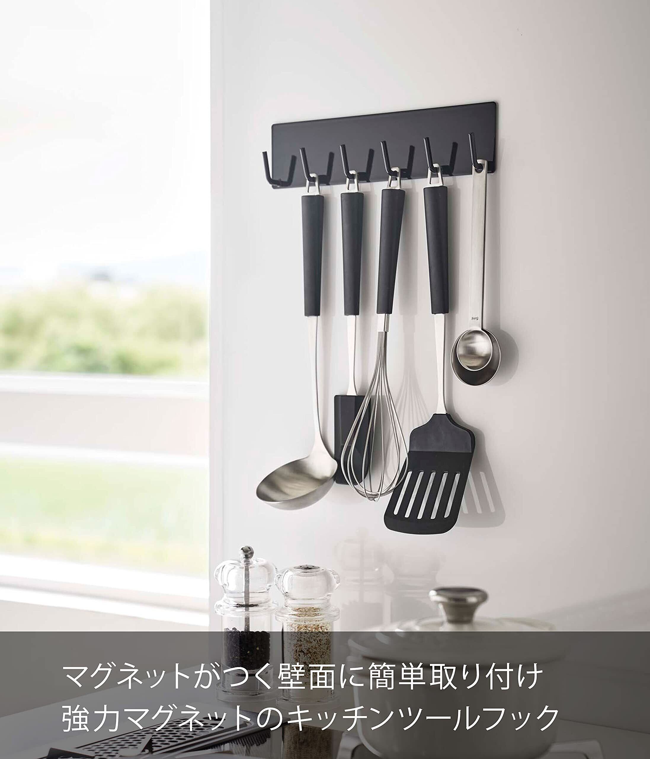 山崎実業(Yamazaki) マグネット キッチンツールフック ブラック 約W24.5XD3.5XH6cm タワー 浮かせる収納 簡単取り付け 5135