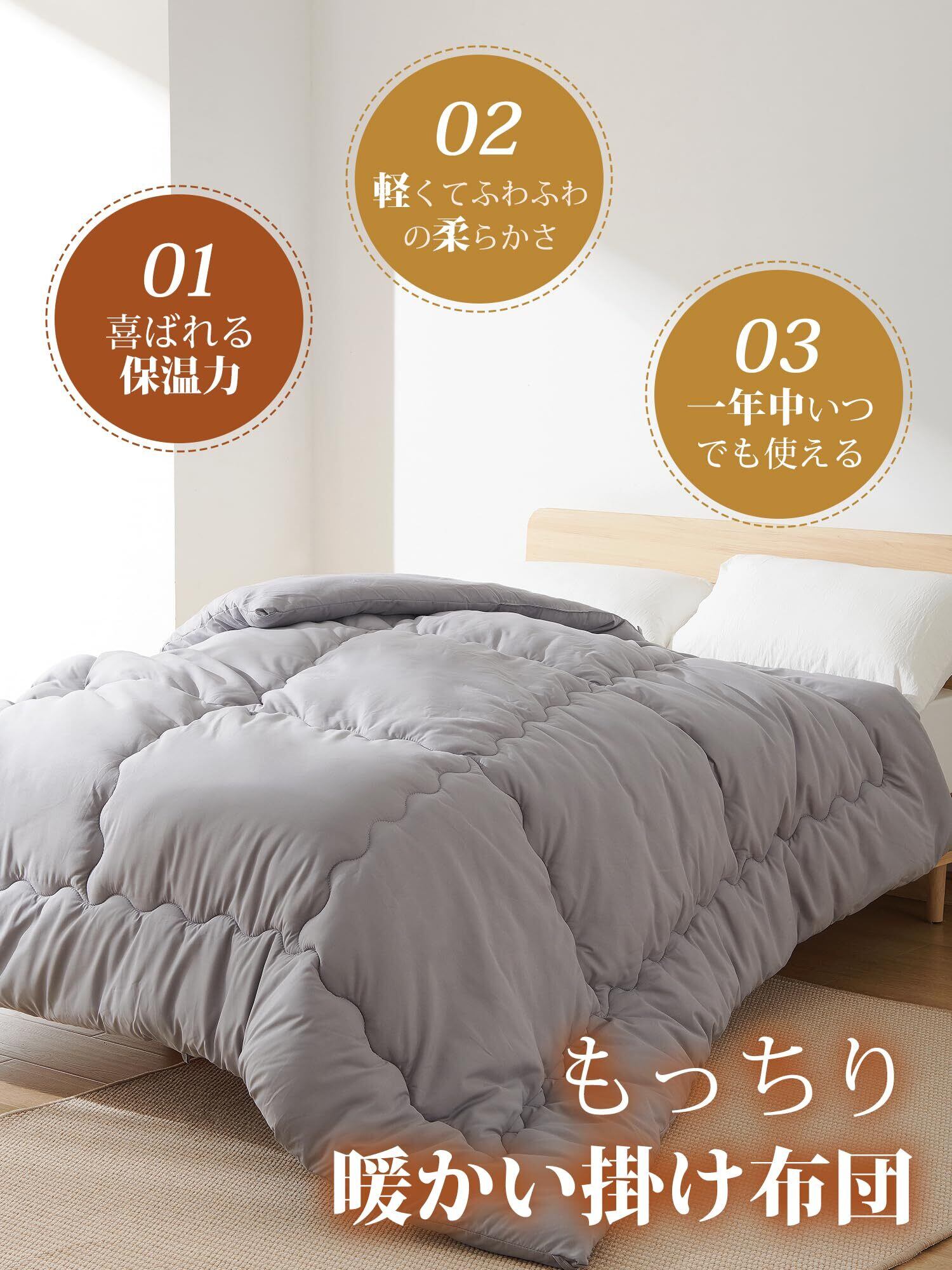 クモリ(Kumori) 掛け布団 シングル オールシーズン 軽量 洗える 「TEIJIN 抗菌消臭中棉」 秋冬 2.3kg 暖かい ふんわり 柔らかい ほこりが出にくい 保温 通気 掛けふとん 年中使える グレー 150X210cm