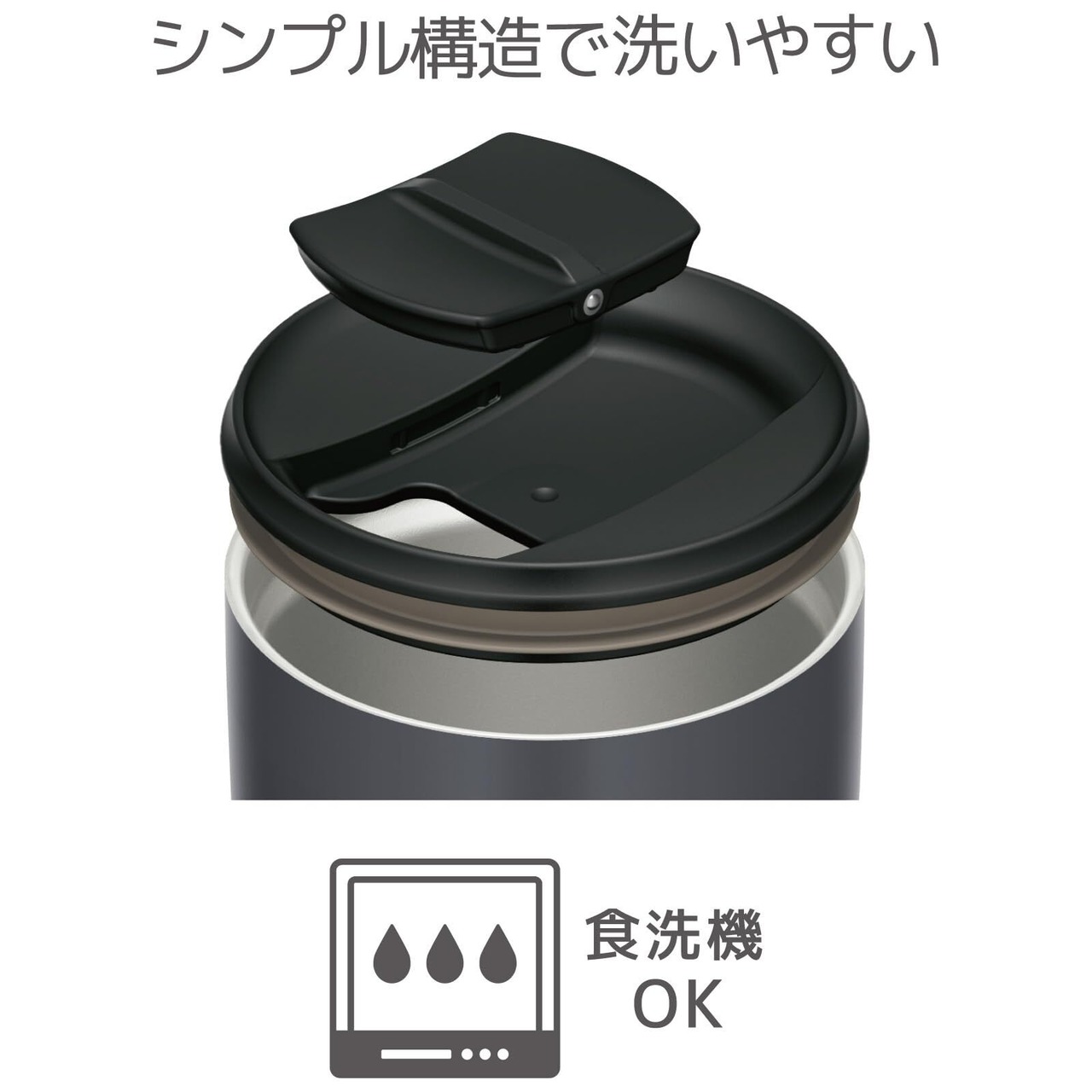 全パーツ食洗機対応で洗いやすさにこだわった、スライド式フタ付きのタンブラー