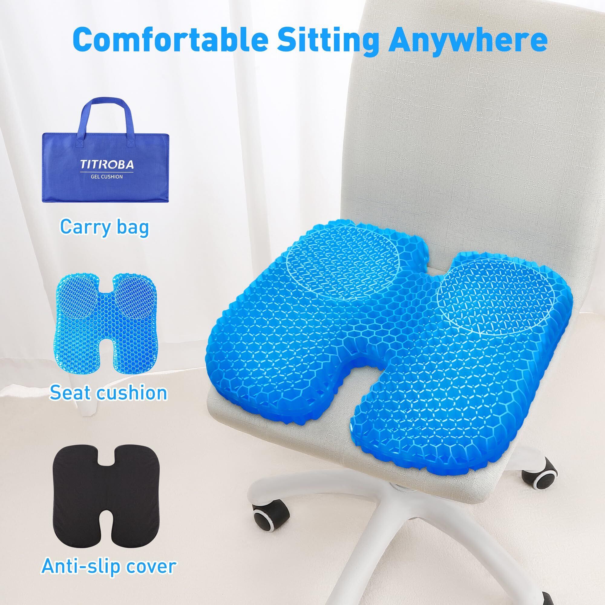 【 限定】チチロバ(TITIROBA) ゲルクッション クッション 座布団 人間工学 無重力 ハニカム構造 蒸れない 敬老の日 在宅勤務 オフィス 車 椅子 自宅用 洗える カバー付き ブルー 22FC018