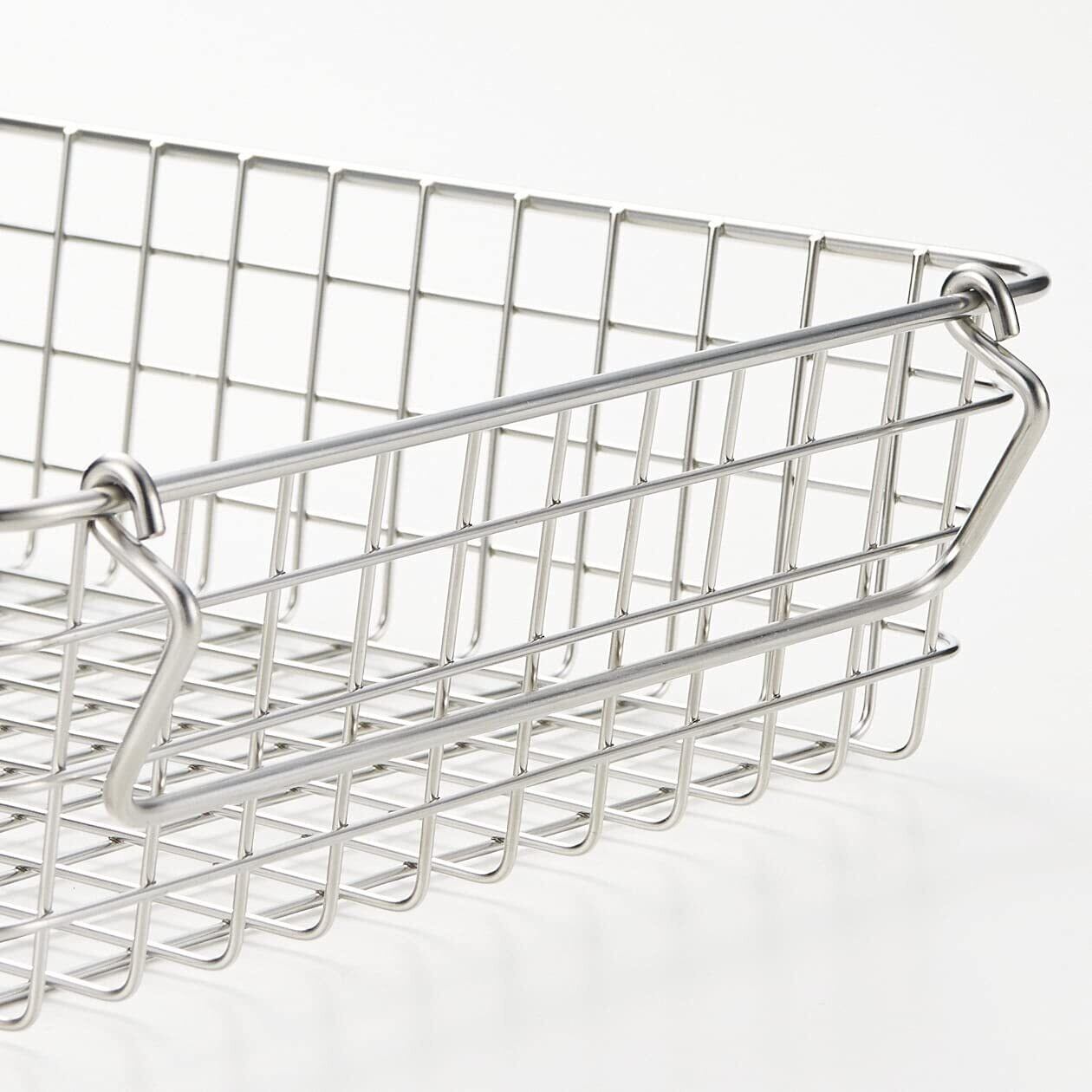 錆びにくいステンレスを使用したバスケットです。持ち手を内側におさめると積み重ねもできます。
