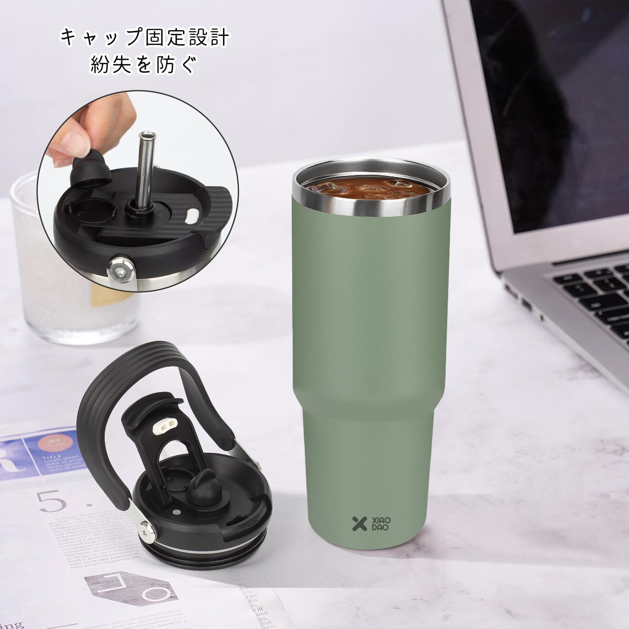 【真空断熱タンブラー】:二重層ステンレス真空断熱設計で、優れた保温・保冷性能で、飲み物を長時間保温・保冷できます。コーヒーやスポーツドリンクなど、様々な飲み物を入れるのに適しています。
