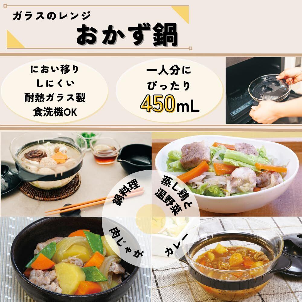 HARIO(ハリオ) ガラスのレンジおかず鍋 電子レンジ用 レンジで簡単調理 ブラック 実用容量450ml 日本製 クリームスープ 手作り XOY-1-B