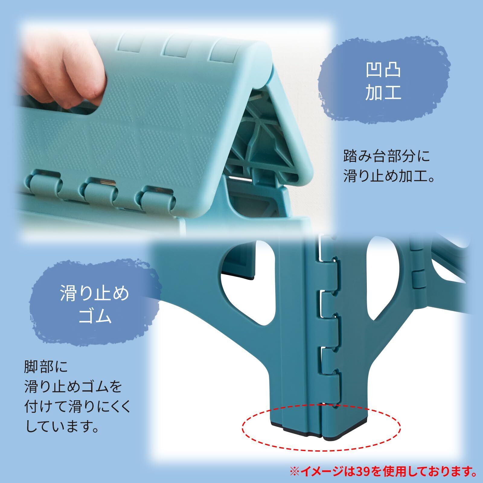 ●軽くて丈夫、スリムに収納できます。●踏み台の表面には凹凸加工を施し、脚部には滑り止めゴムを付けて滑りにくくしています。●上部には持ち手が付いているので、移動させる際も大変運びやすいデザインとなっています。●使用しない時はコンパクトに折りたたむ事が出来ます。