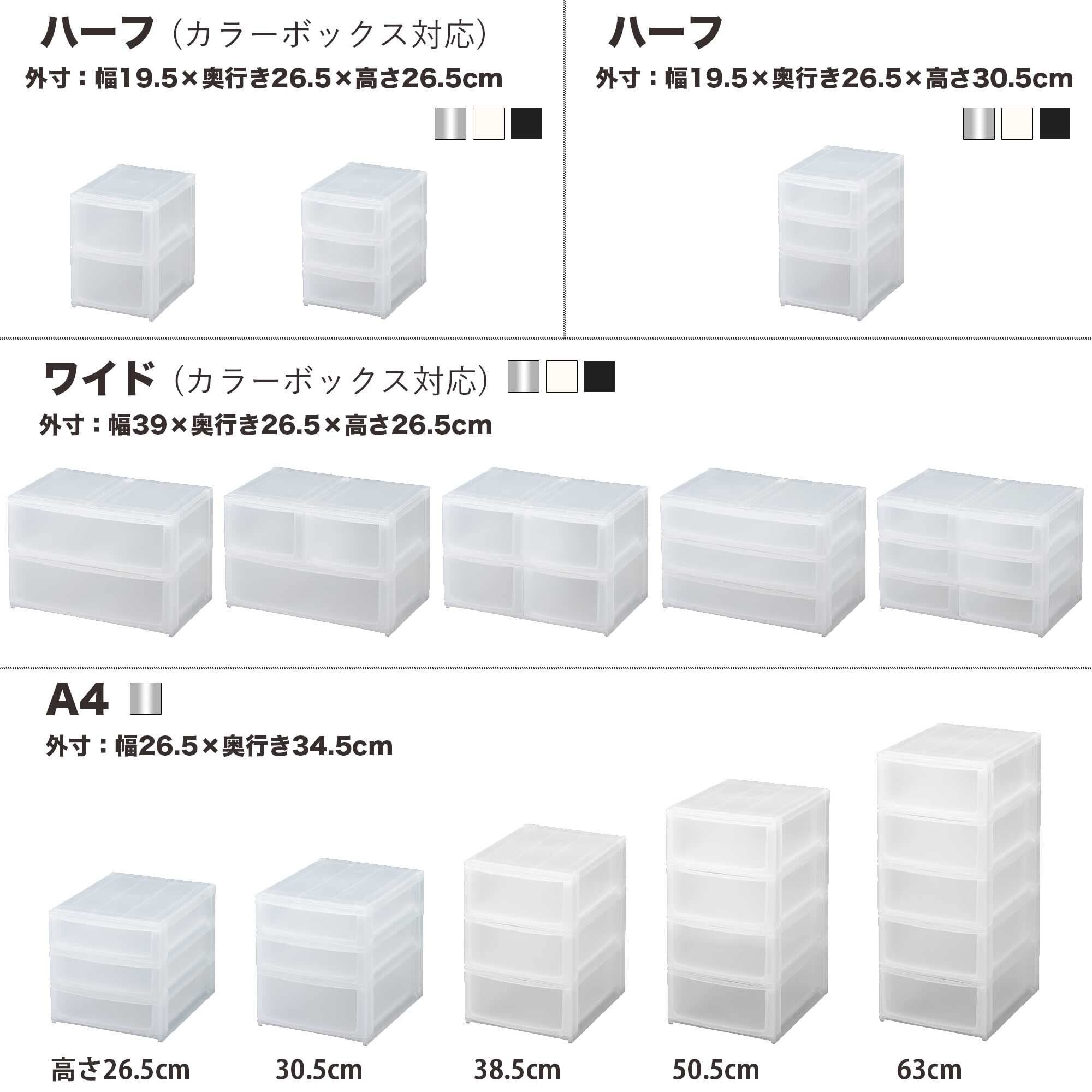 サンカ ポスデコ 引き出し収納ボックス ハーフ 3段(浅2深1) ホワイト ずれを防ぐラバーストッパー 重ねて使える スタッキングチェスト ロック機構 日本製 カラーボックス 収納ケース 小物 衣装 ボックス (幅19.5x奥行26.5x高さ30.5cm) NpdA5-a2f1WH
