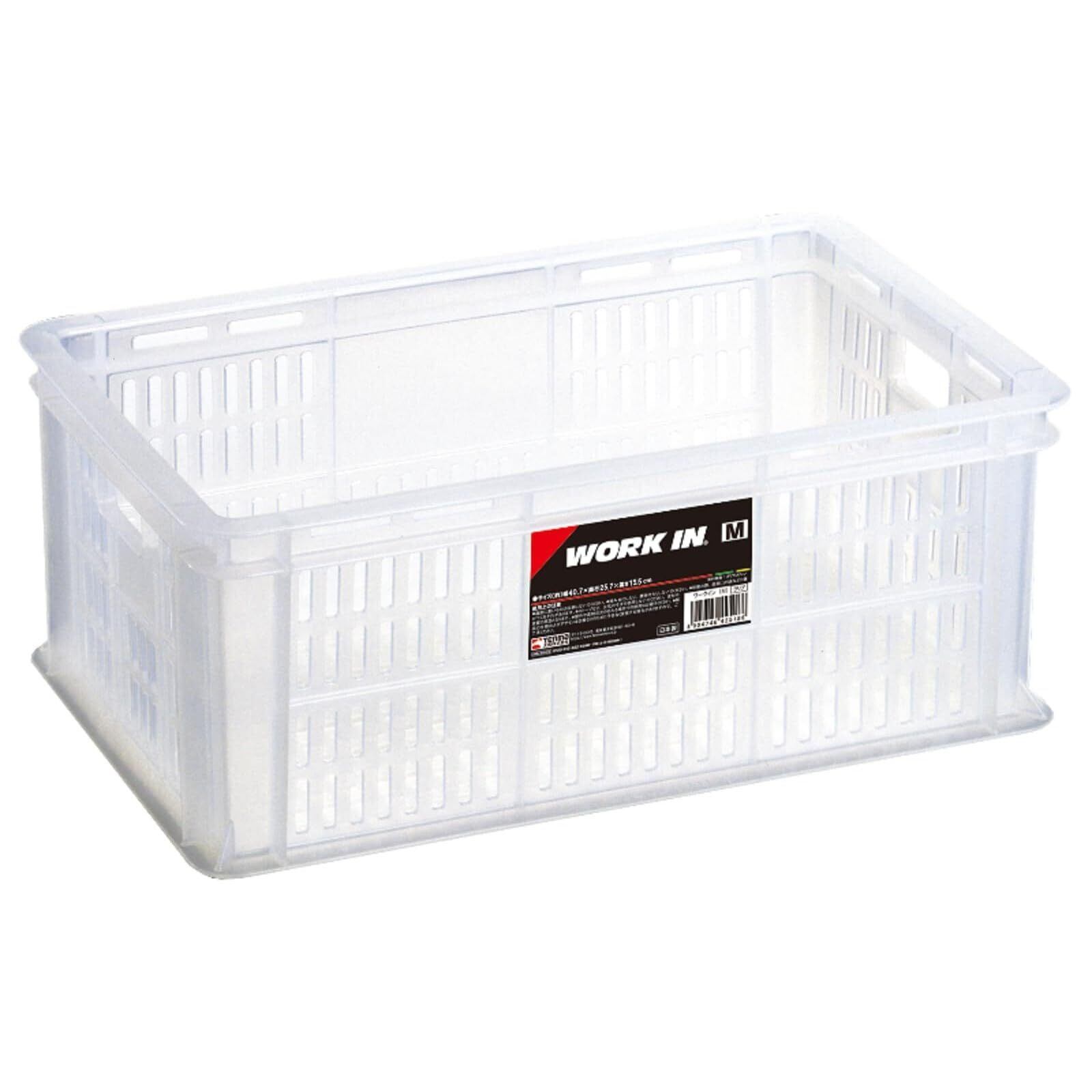 天馬(Tenma) 持ち手付きの丈夫なコンテナボックス 日本製 完成品 ワークイン Mサイズ 文房具や日用品など様々なものを収納できるカゴ ビデオテープが18枚入るバスケット プラスチック 【組立不要】 【色 クリア】 【サイズ M】 【幅40.7×奥行25.7×高さ15.6cm】