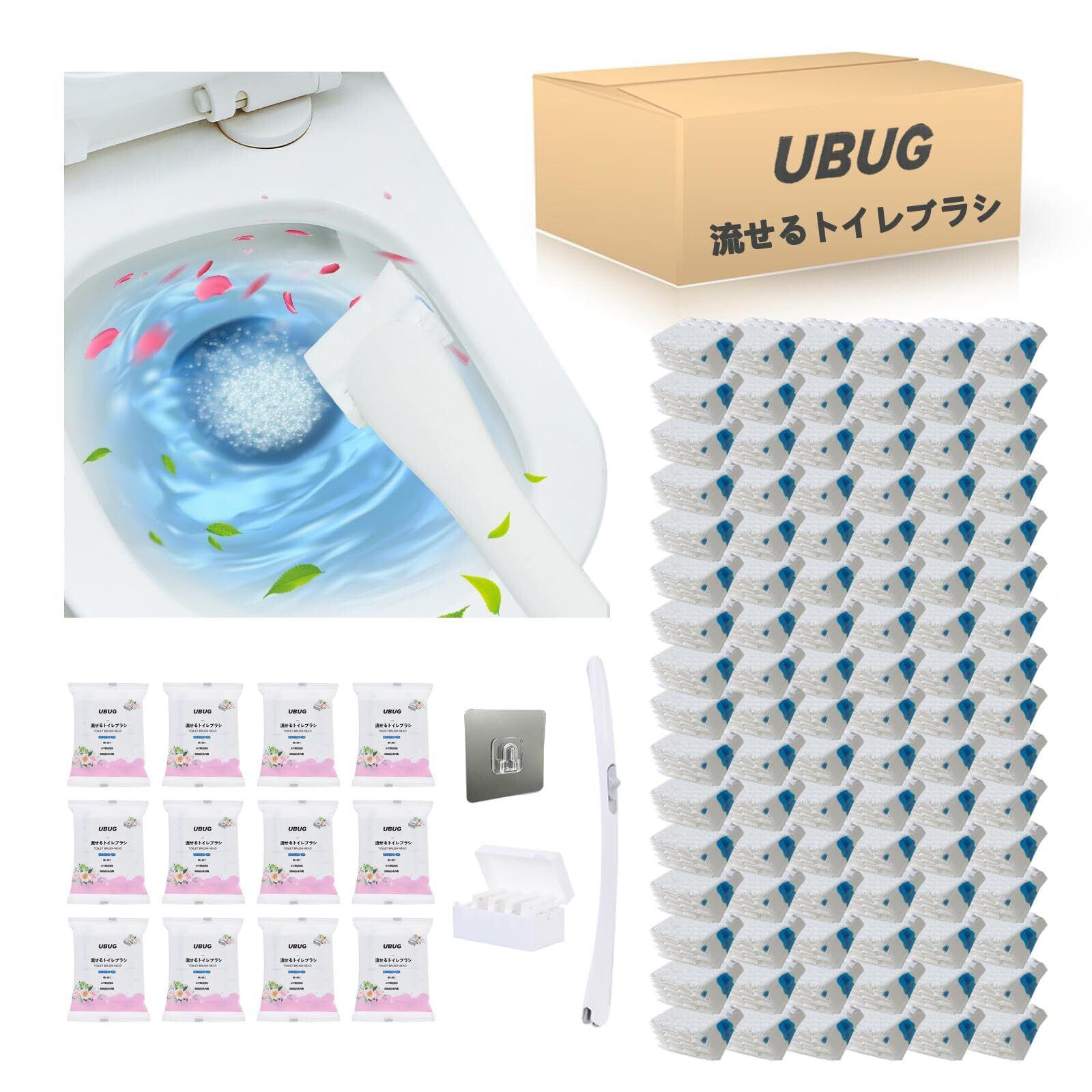 【在庫セール】【まとめ買い】UBUG 流せるトイレブラシ トイレ掃除 ブレンドフローラルの香り 本体+付け替え96個 (本体付属64個+付替品32個) + 収納ボックス+フック付き(2個) トイレ洗剤 トイレブラシ 使い捨て 洗剤 汚れが落ちる 衛生 清潔 掃除道具 (混合型の香り, トイレ 1 つ分用) | lcsshop