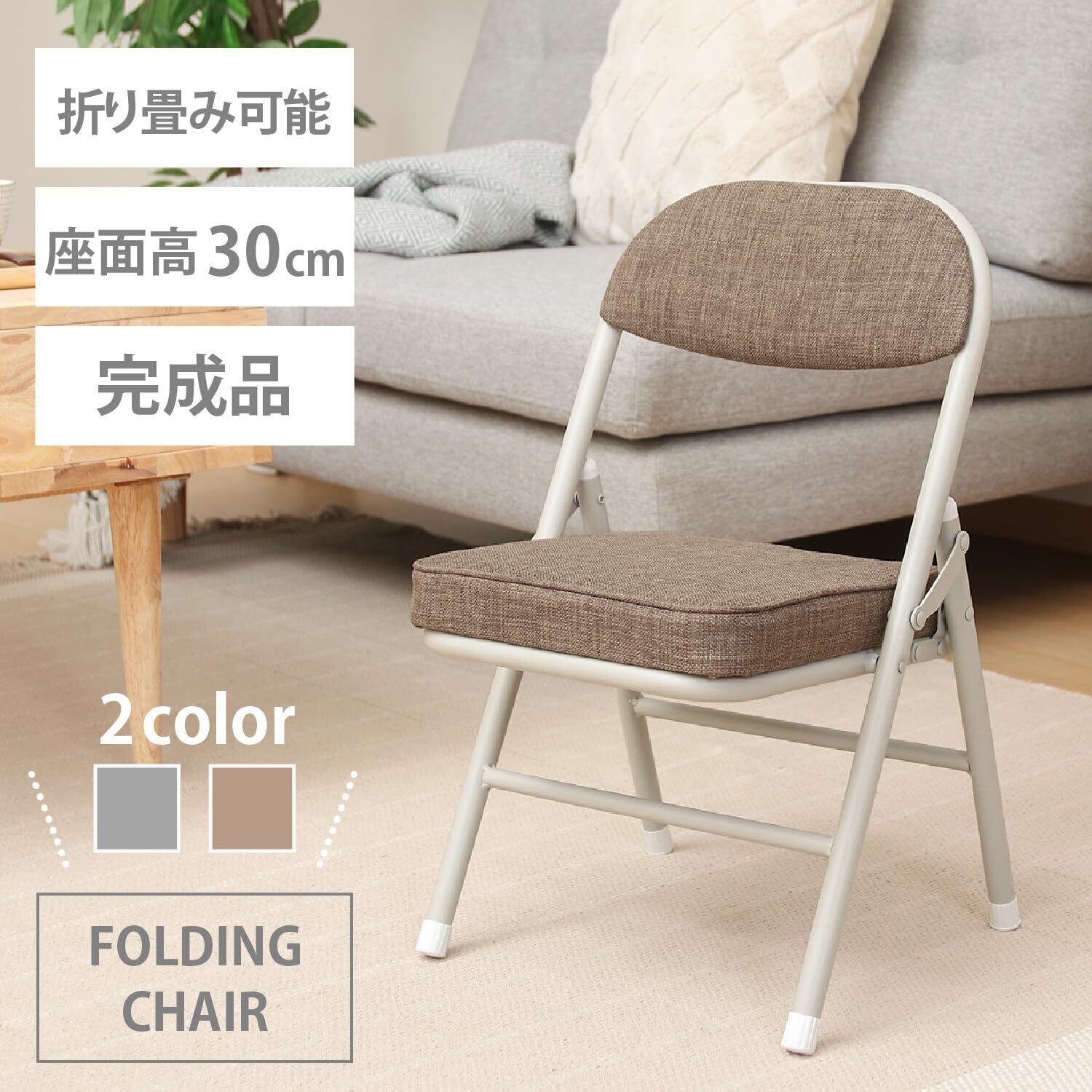 不二貿易 折りたたみチェア 椅子 パイプチェア 座面高30cm ロータイプ ミニ 背もたれ付き 幅34×奥行34×高さ53.5cm ファブリック ブラウン 73627