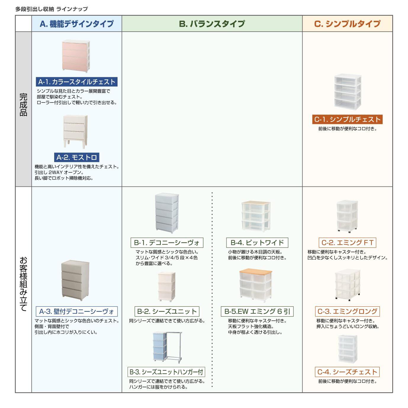 豊富な連結バリエーションで子供部屋やクローゼットの整理にとっても便利!!フォルムがシンプルデザインなので、リビングでも大活躍!!キャスター付きで、クローゼットからの出し入れも簡単。